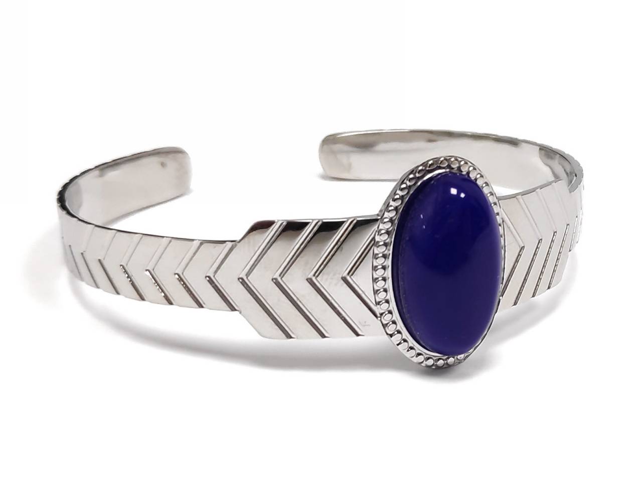Βραχιόλι Πέτρα 316L, σταθερό με Lapis σε χρώμα Ασημί