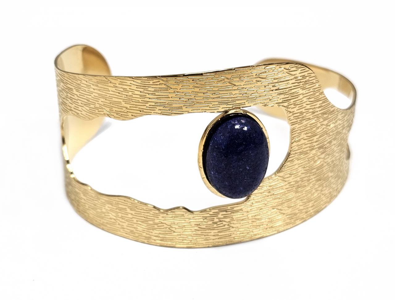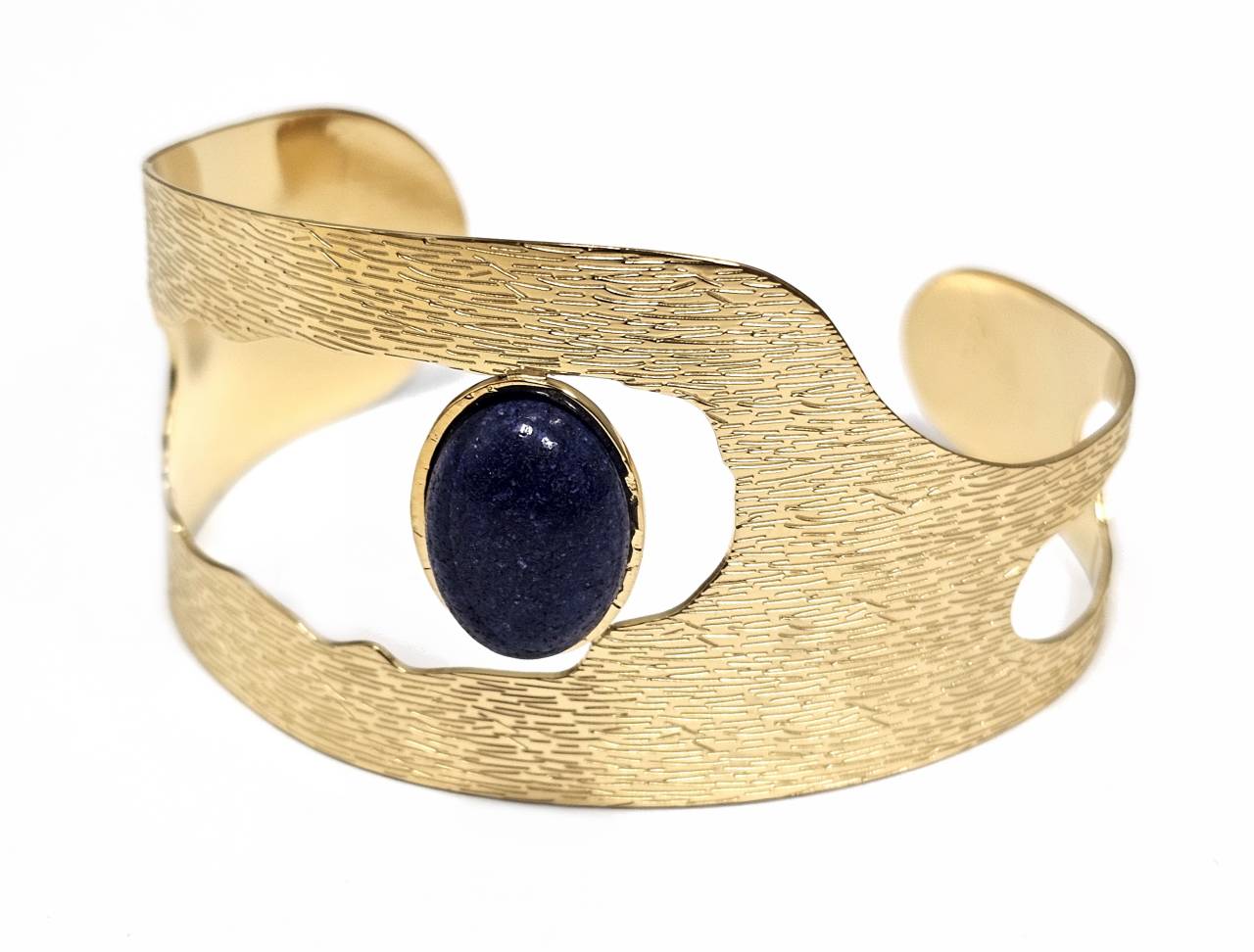 Βραχιόλι Πέτρα 316L, σταθερό με Lapis σε χρώμα Χρυσαφί