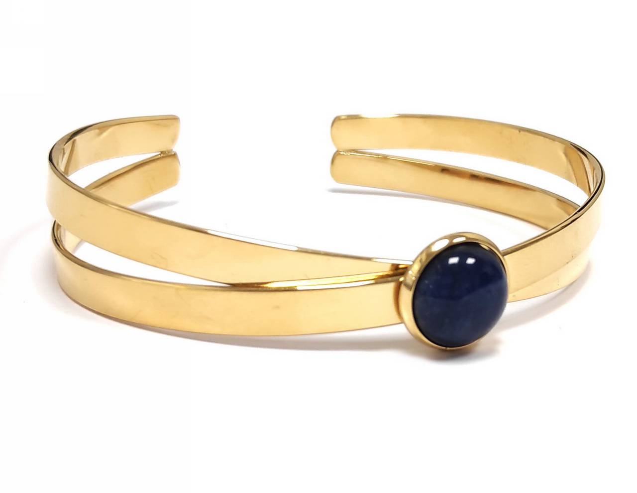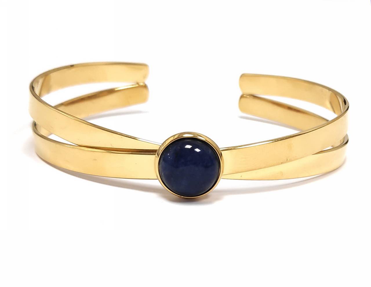 Βραχιόλι Πέτρα 316L, σταθερό με Lapis σε χρώμα Χρυσαφί
