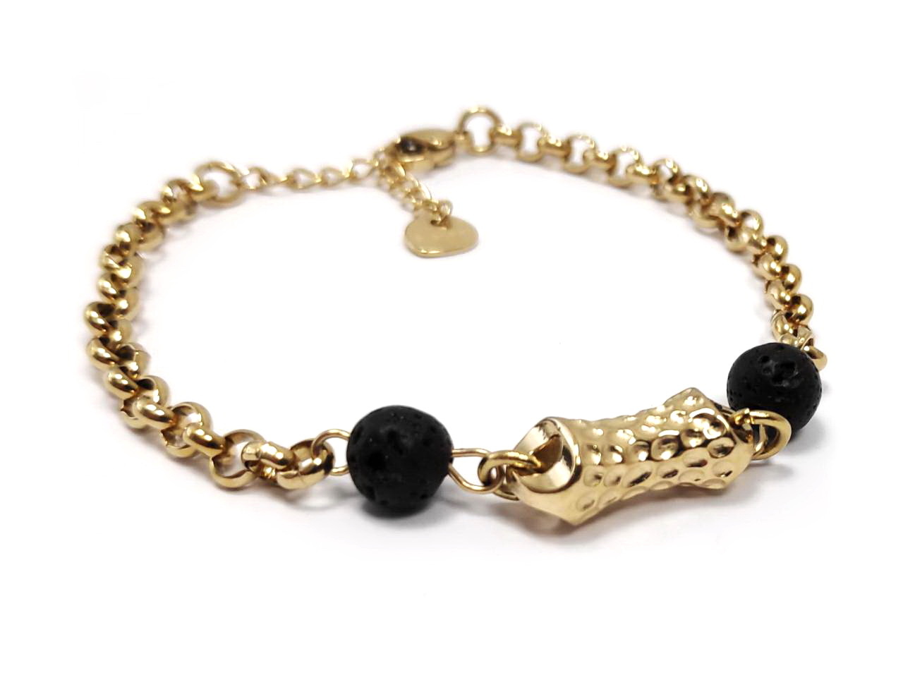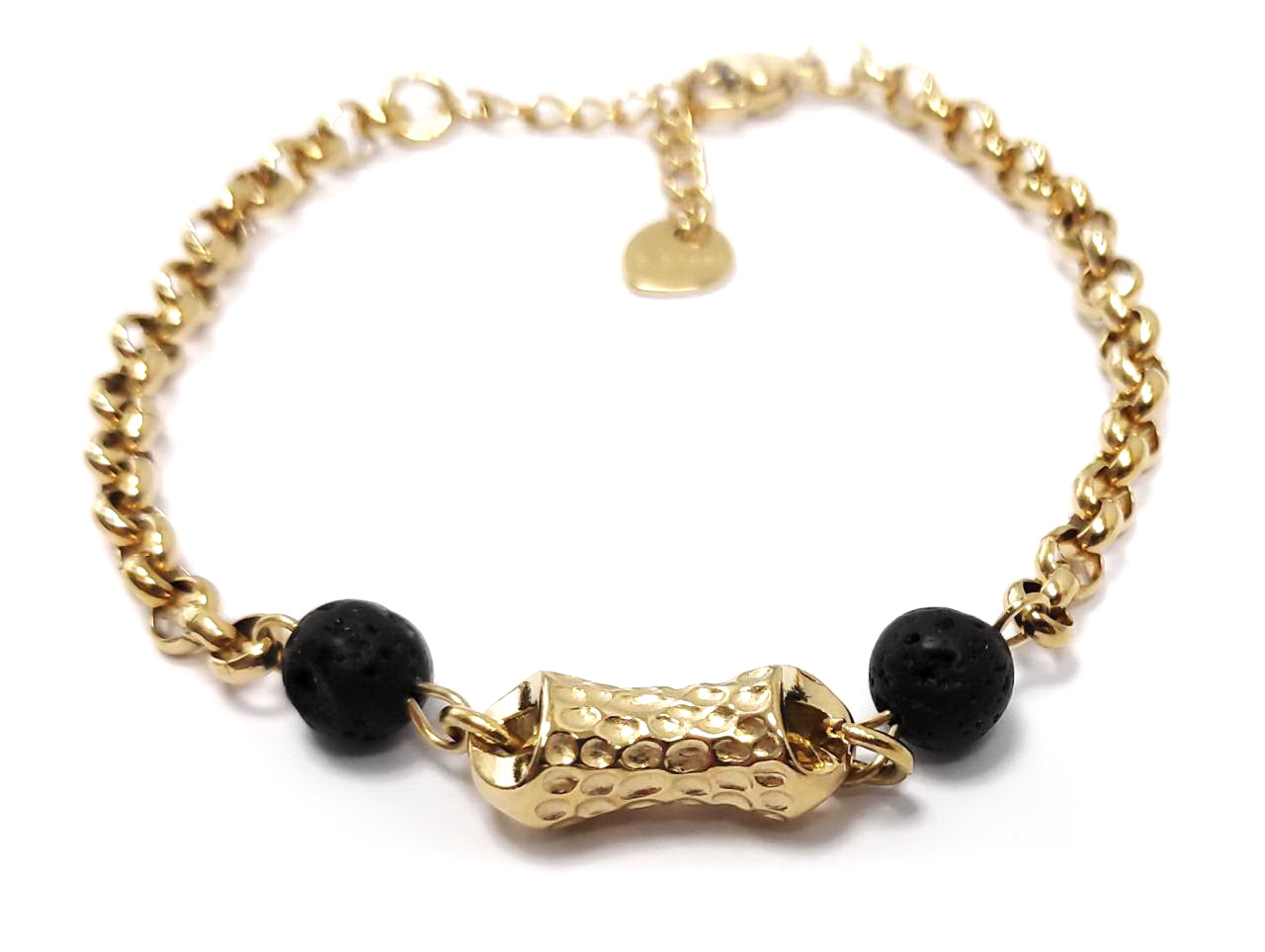 Βραχιόλι Πέτρα 316L, αλυσίδα και λάβα σε χρώμα Χρυσαφί