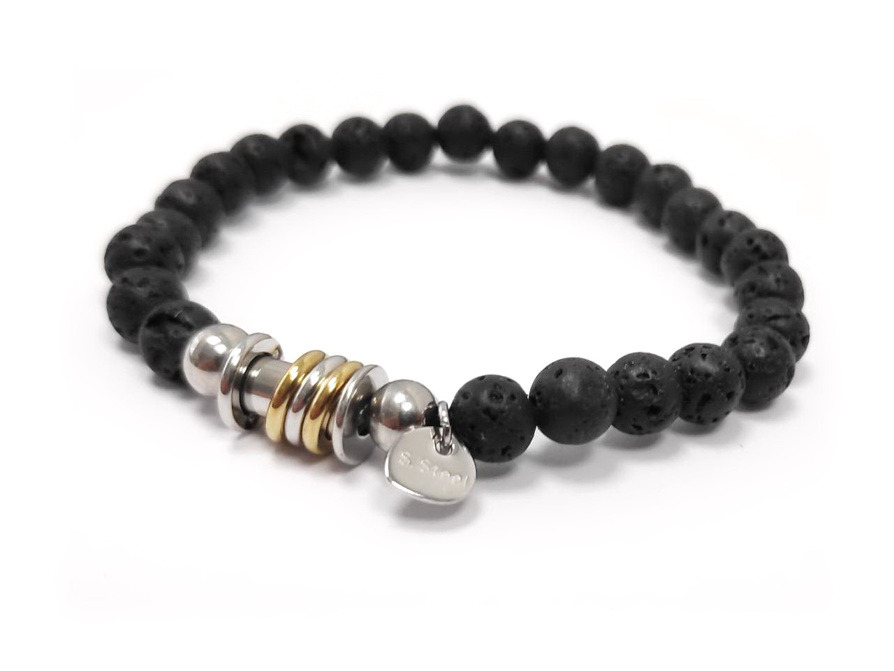 Βραχιόλι Πέτρα 316L, με λάβα σε χρώμα Ασημί