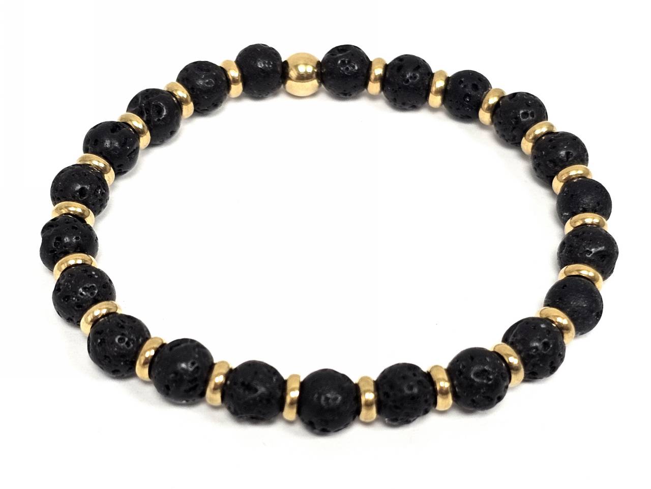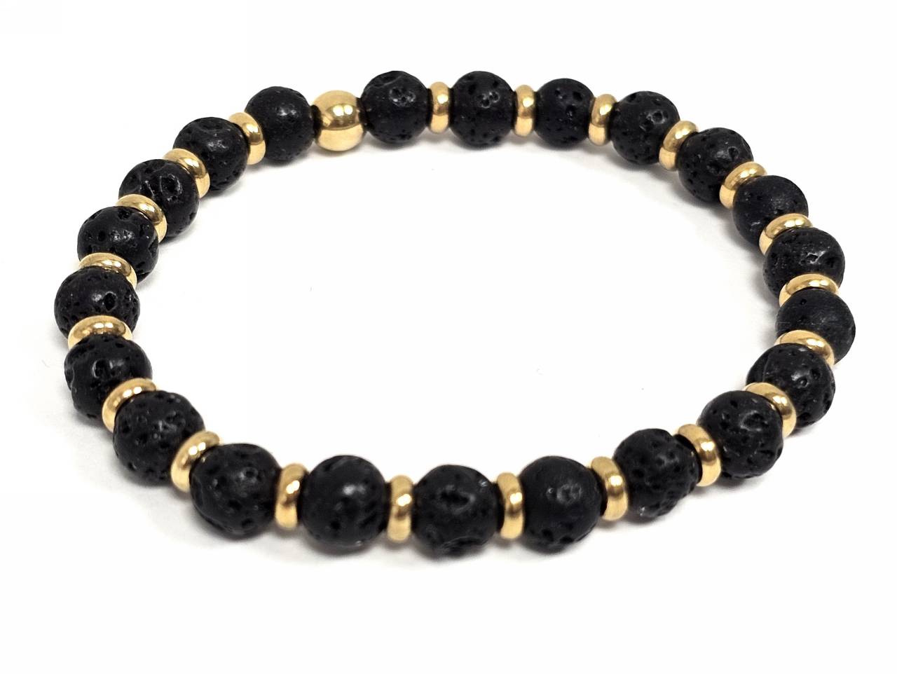 Βραχιόλι Πέτρα λάστιχο, 6# λάβα και ατσάλινα στοιχεία σε χρώμα Χρυσαφί