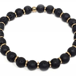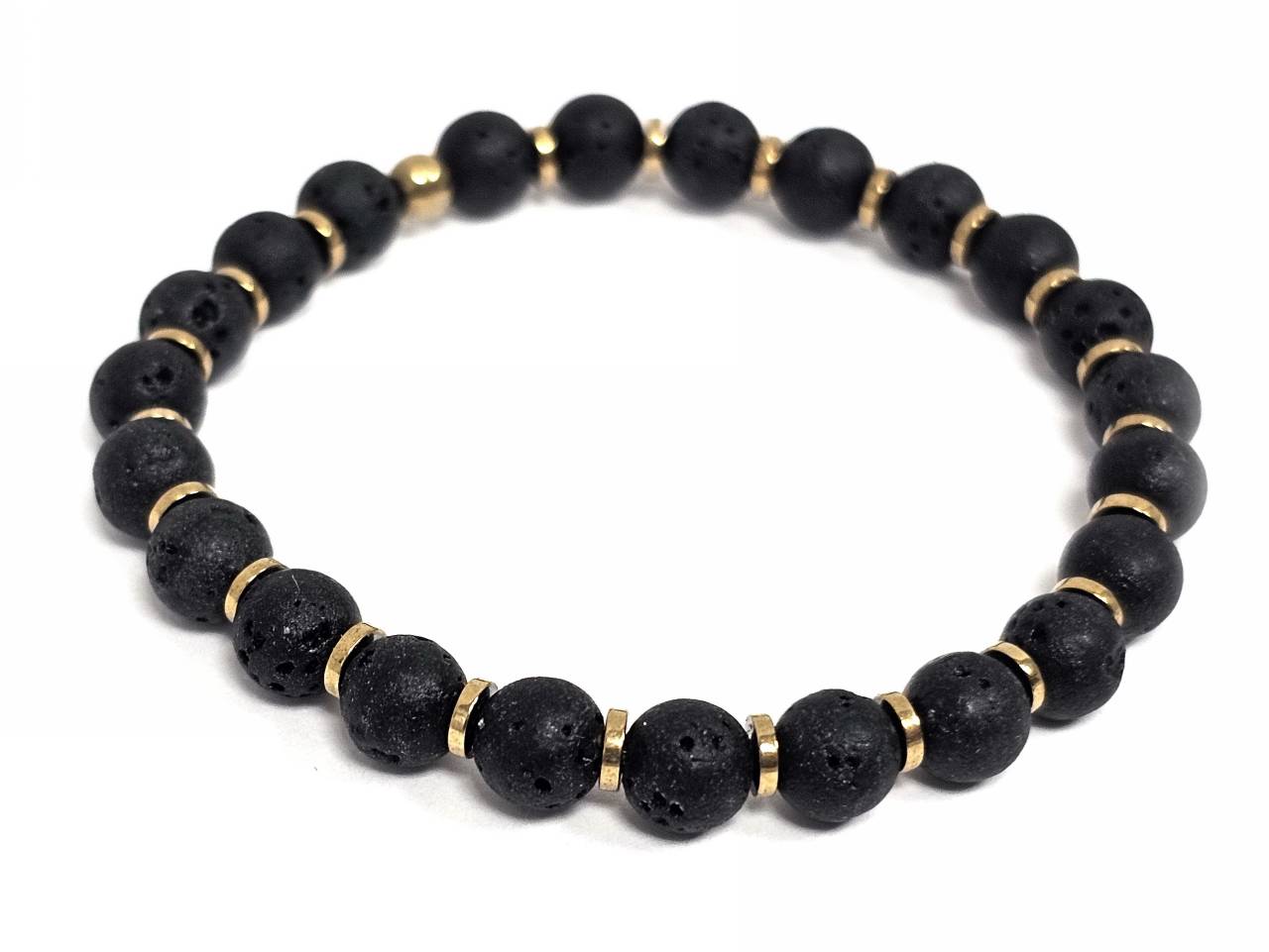 Βραχιόλι Πέτρα λάστιχο, 6# λάβα, και στοιχεία από αιματίτη σε χρώμα Χρυσαφί