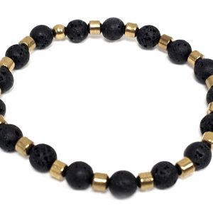 Βραχιόλι Πέτρα λάστιχο, 6# λάβα, και στοιχεία από αιματίτη σε χρώμα Χρυσαφί