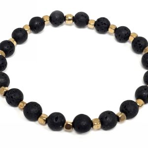 Βραχιόλι Πέτρα λάστιχο, 6# λάβα, και στοιχεία από αιματίτη σε χρώμα Χρυσαφί