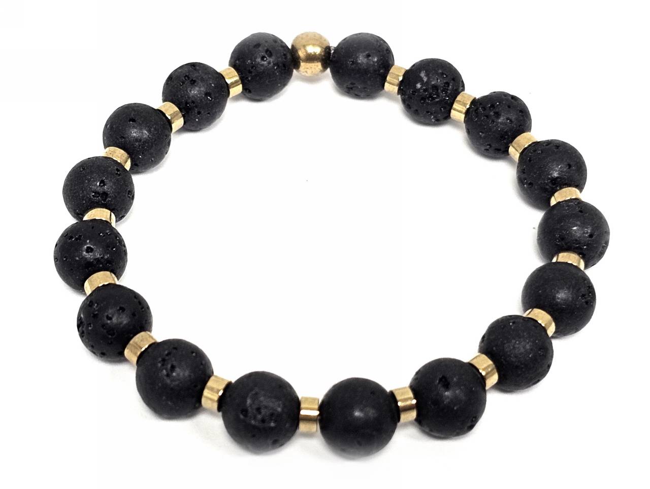 Βραχιόλι Πέτρα λάστιχο, 8# λάβα, και στοιχεία από αιματίτη σε χρώμα Χρυσαφί