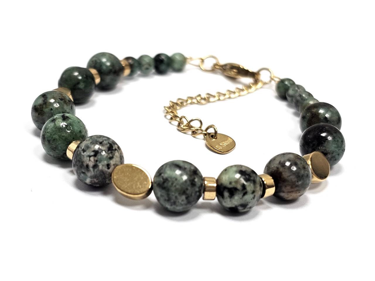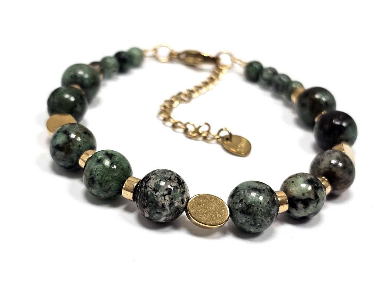 Βραχιόλι Πέτρα με μαλαχίτη και στοιχεία από αιματίτη σε χρώμα Χρυσαφί