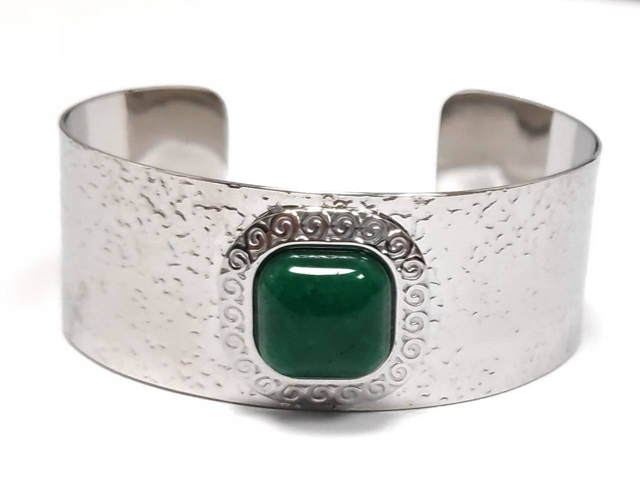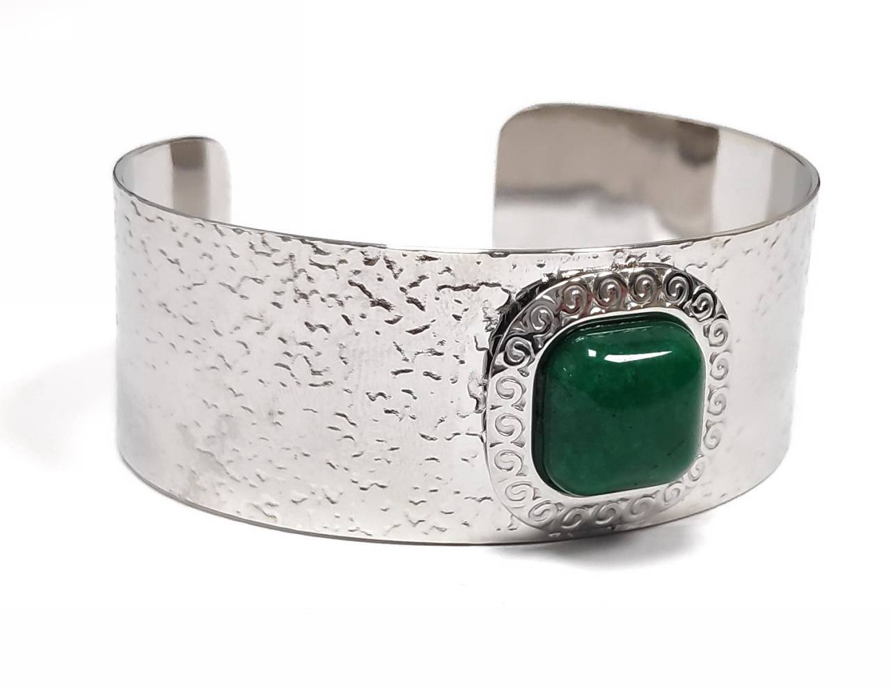 Βραχιόλι Πέτρα 316L, σταθερό με μαλαχίτη σε χρώμα Ασημί