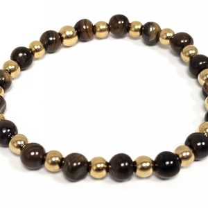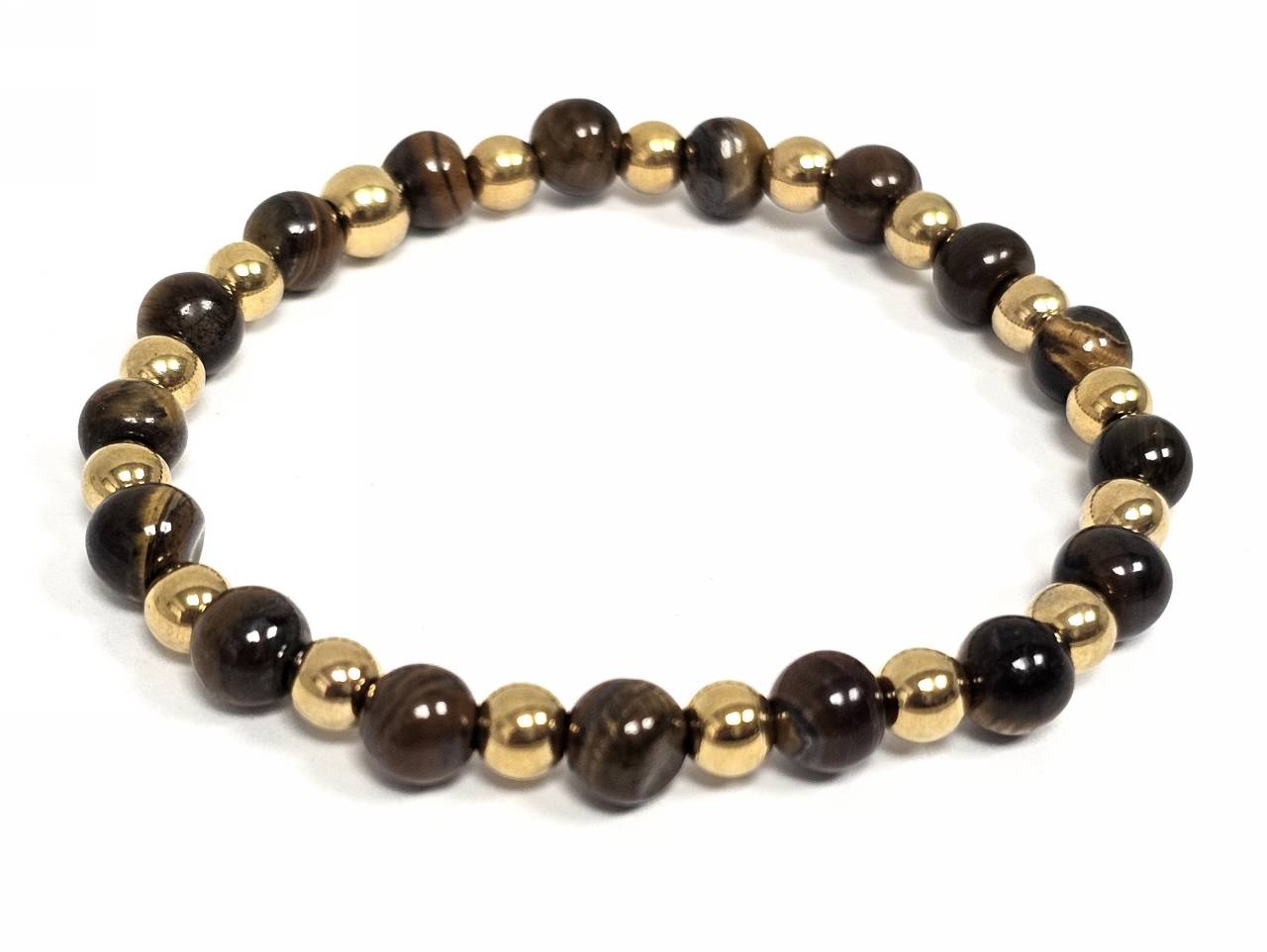 Βραχιόλι Πέτρα λάστιχο, 6# μάτι τίγρης και ατσάλινα στοιχεία σε χρώμα Χρυσαφί