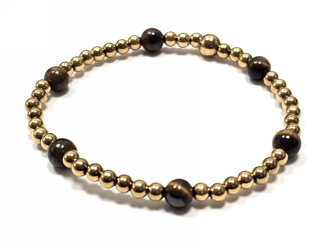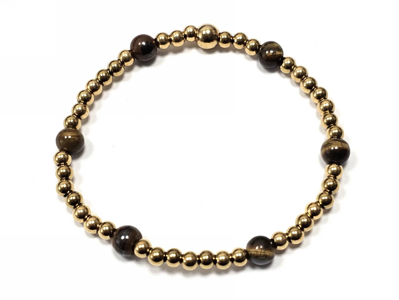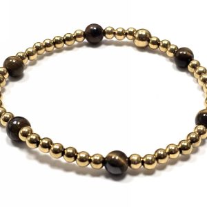 Βραχιόλι Πέτρα λάστιχο, 6# μάτι τίγρης και ατσάλινα στοιχεία σε χρώμα Χρυσαφί