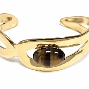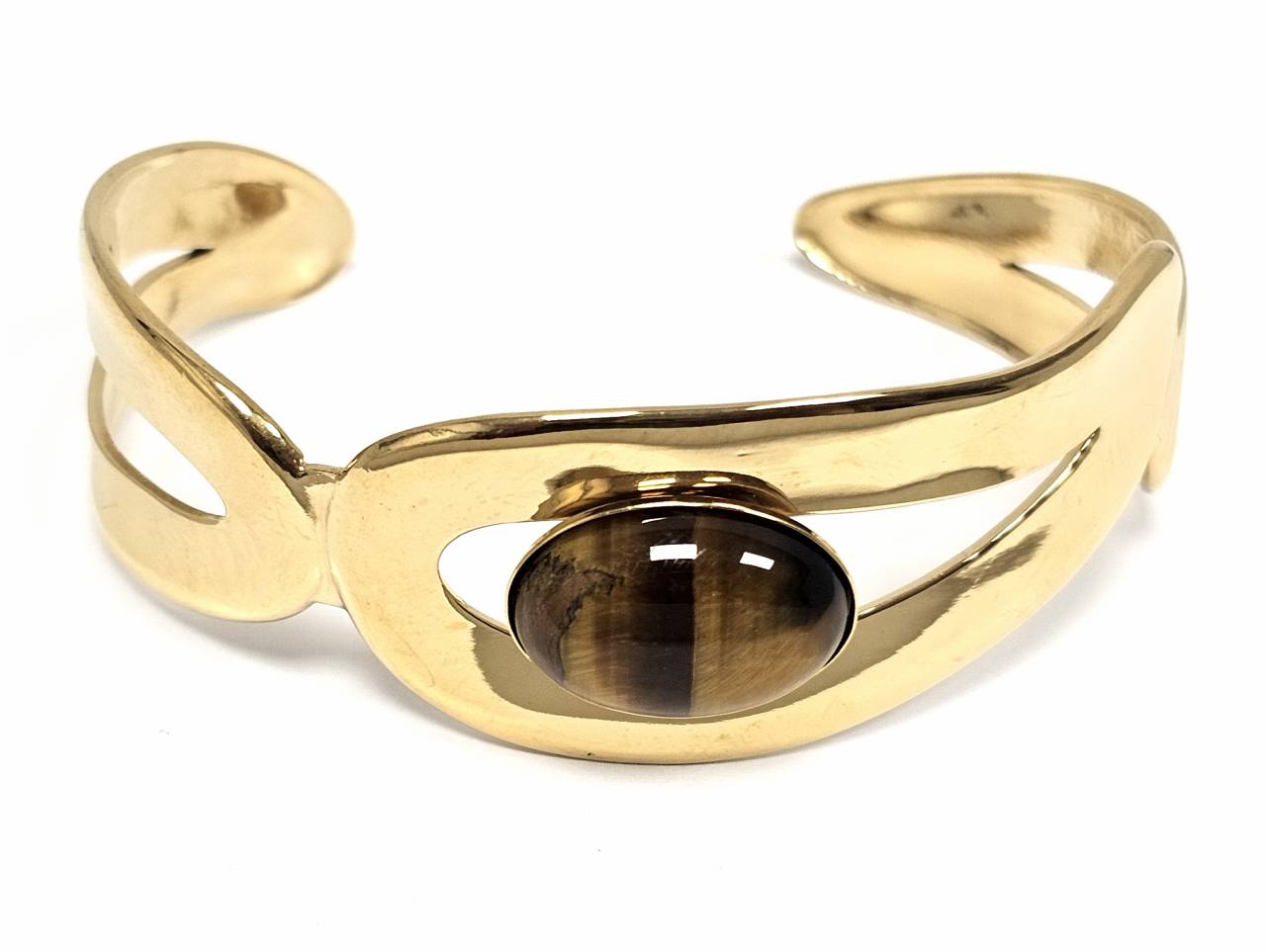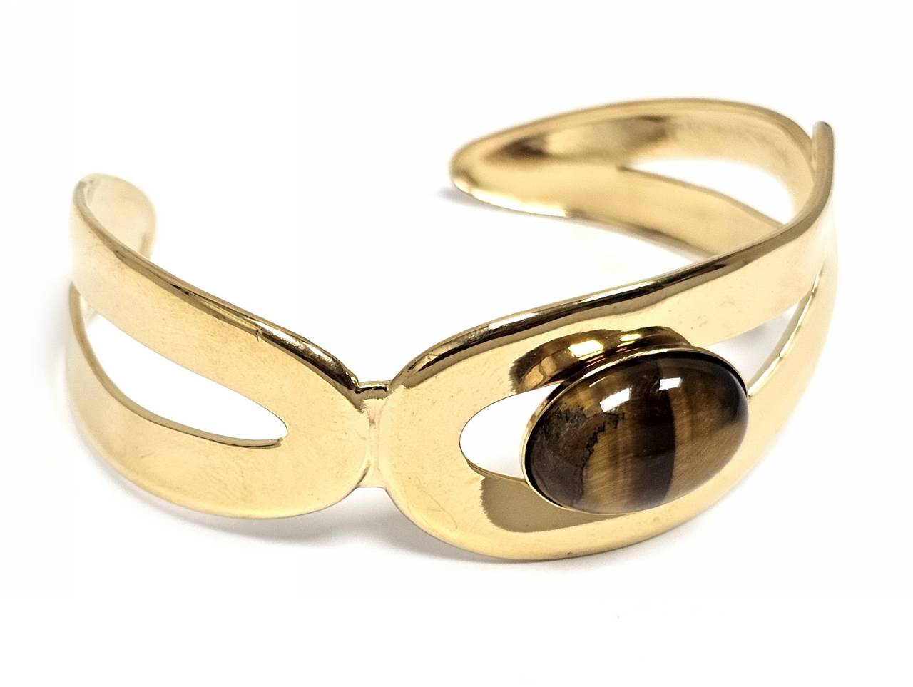 Βραχιόλι Πέτρα ατσάλι 316L, σταθερό με μάτι τίγρης σε χρώμα Χρυσαφί