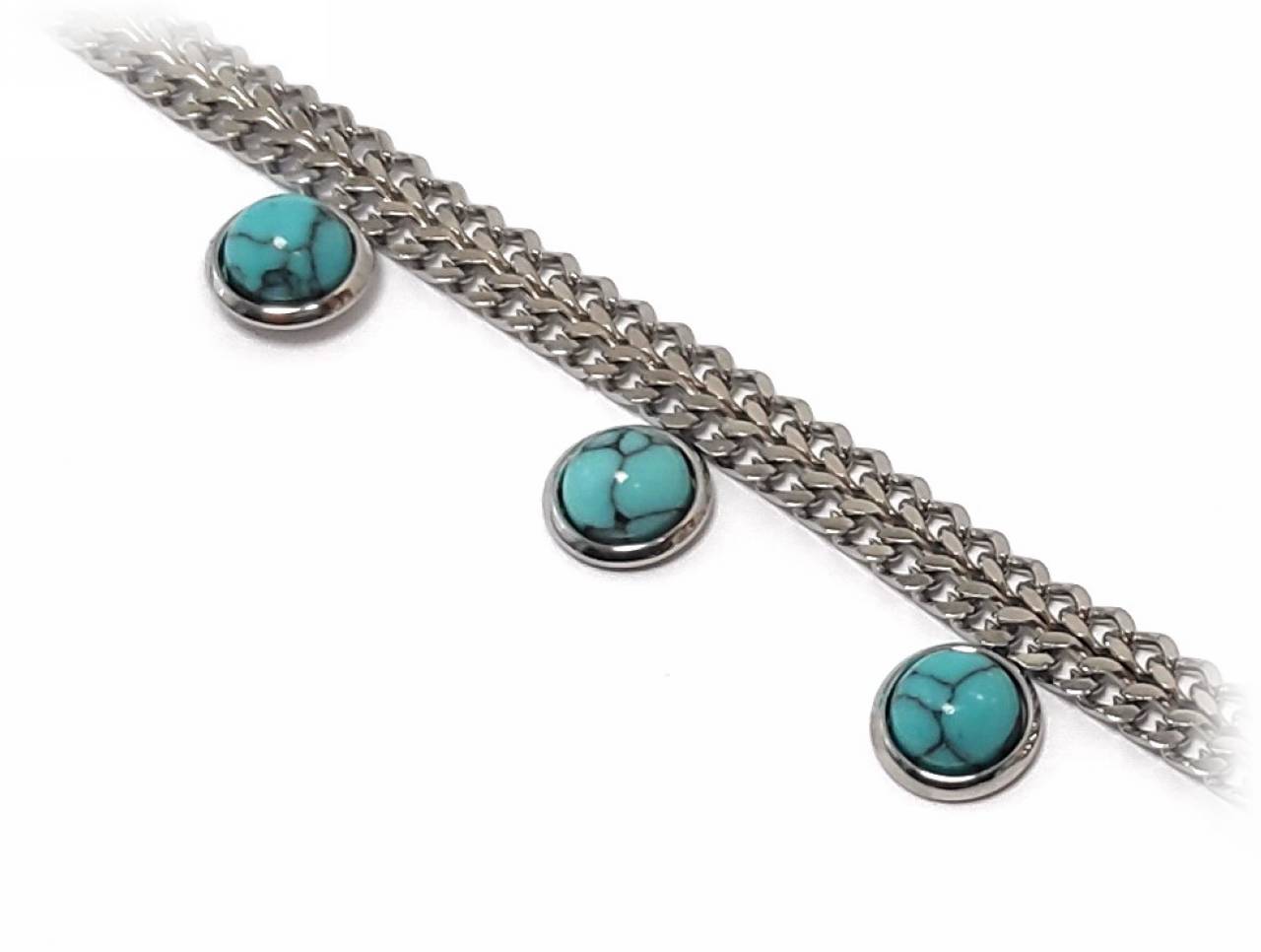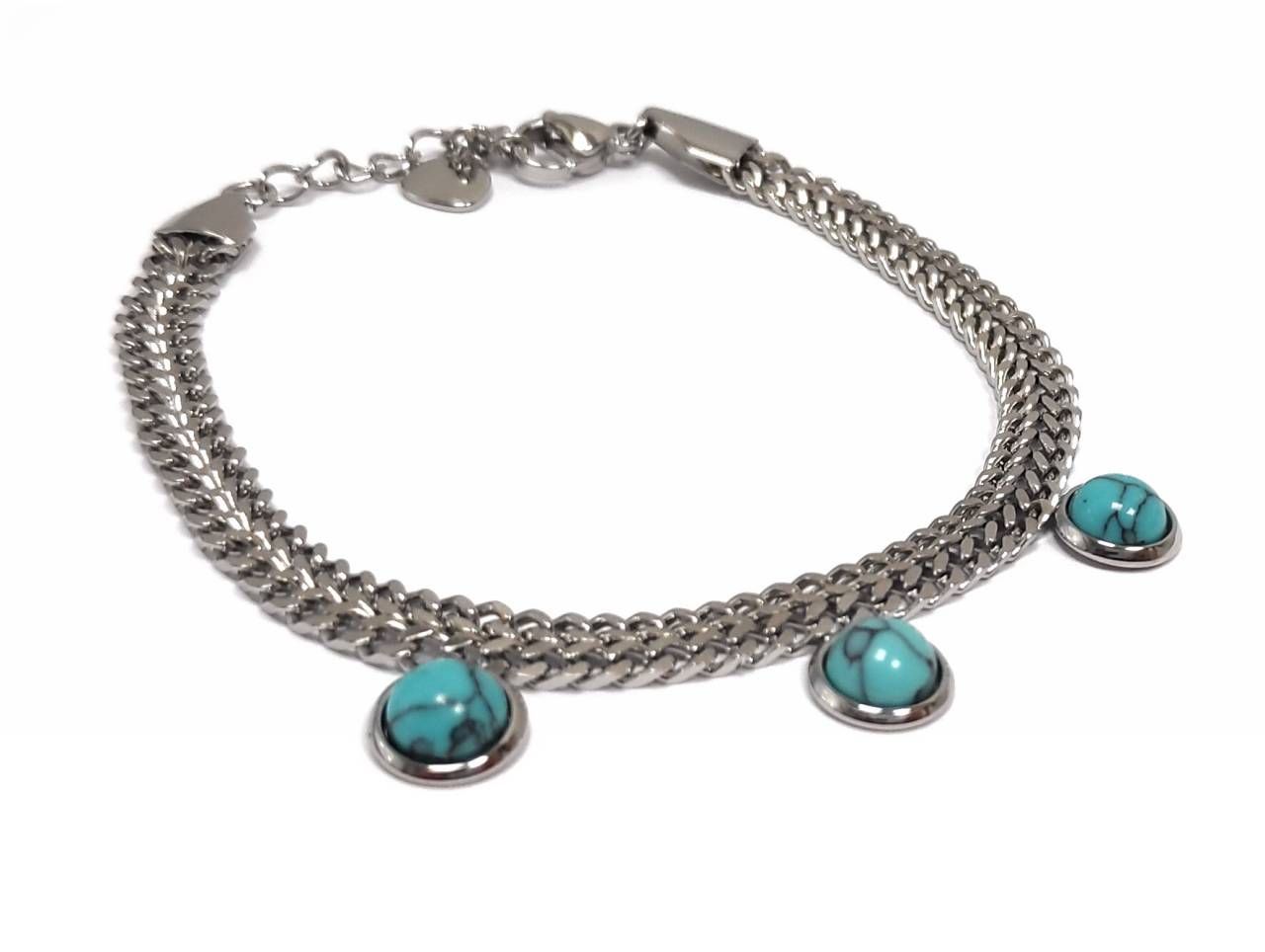Βραχιόλι Πέτρα 316L, αλυσίδα με τυρκουάζ σε χρώμα Ασημί