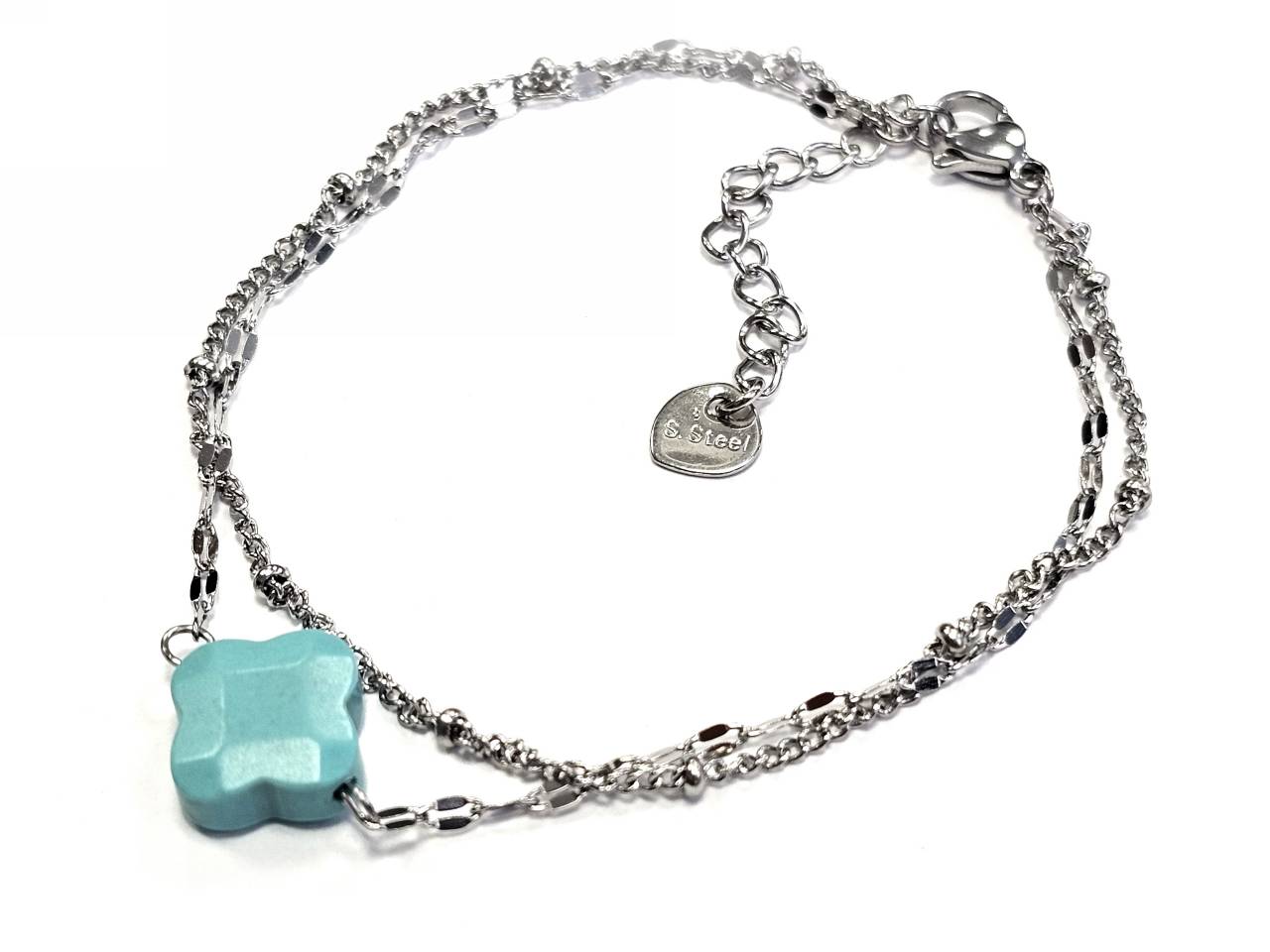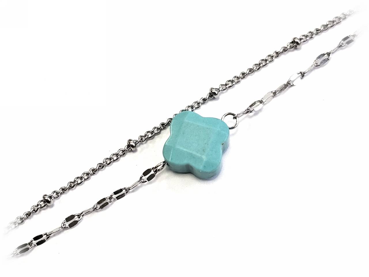 Βραχιόλι Πέτρα ατσάλι 316L, αλυσίδα με τυρκουάζ και σταυρό σε χρώμα Ασημί