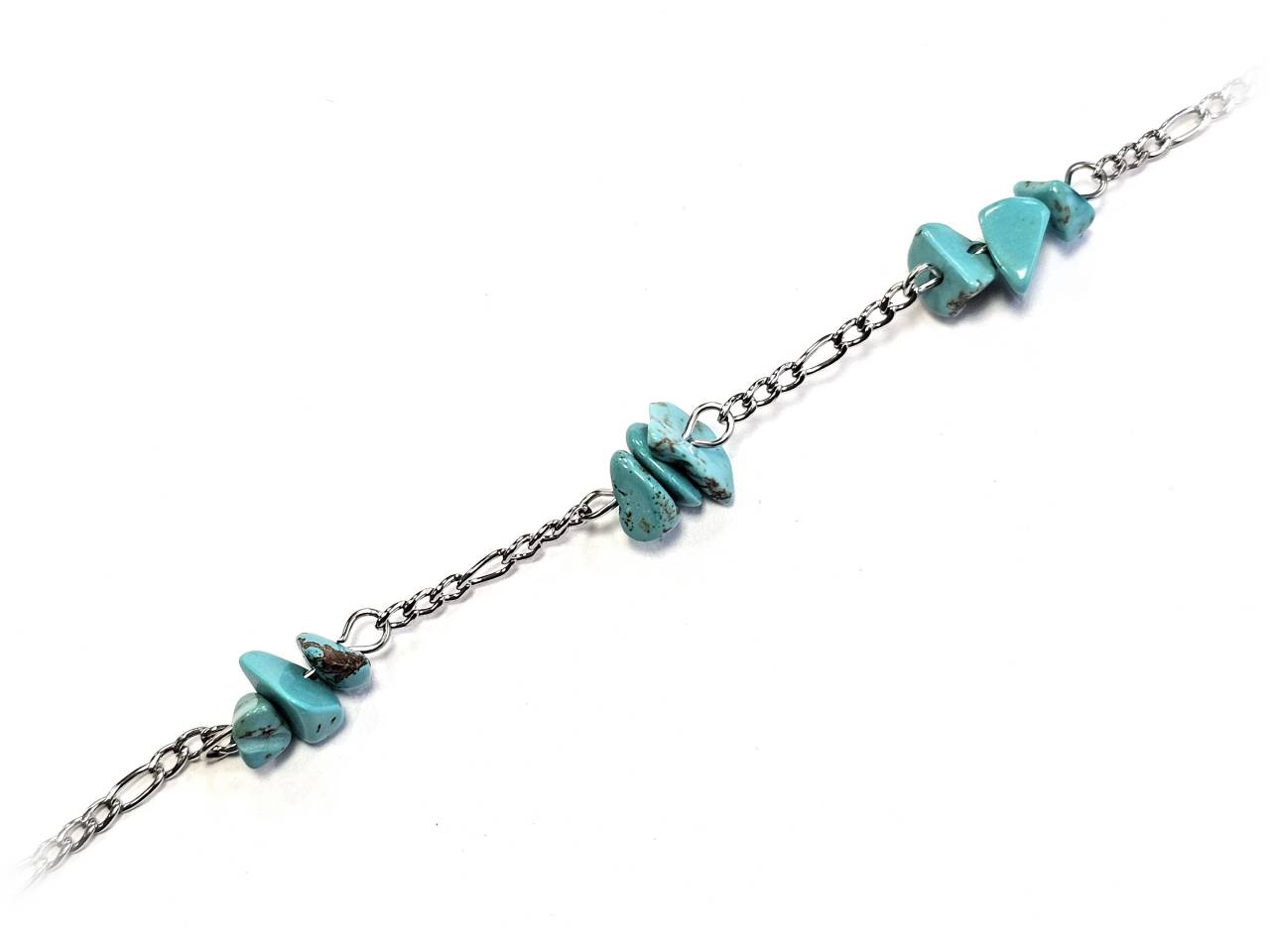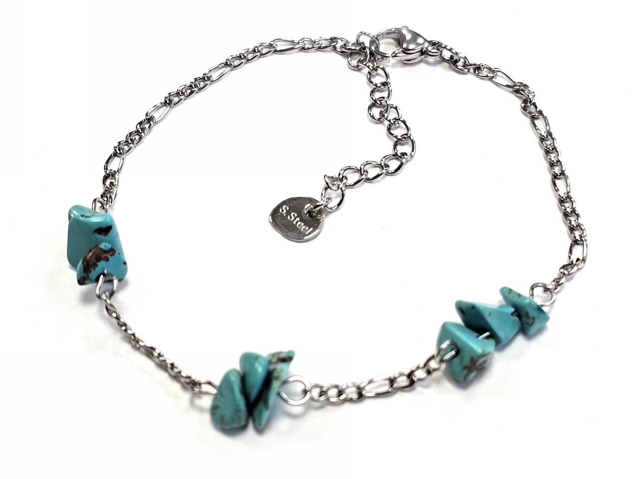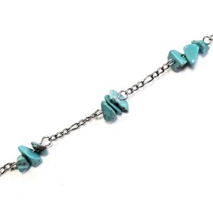 Βραχιόλι Πέτρα ατσάλι 316L, αλυσίδα με τυρκουάζ σε χρώμα Ασημί