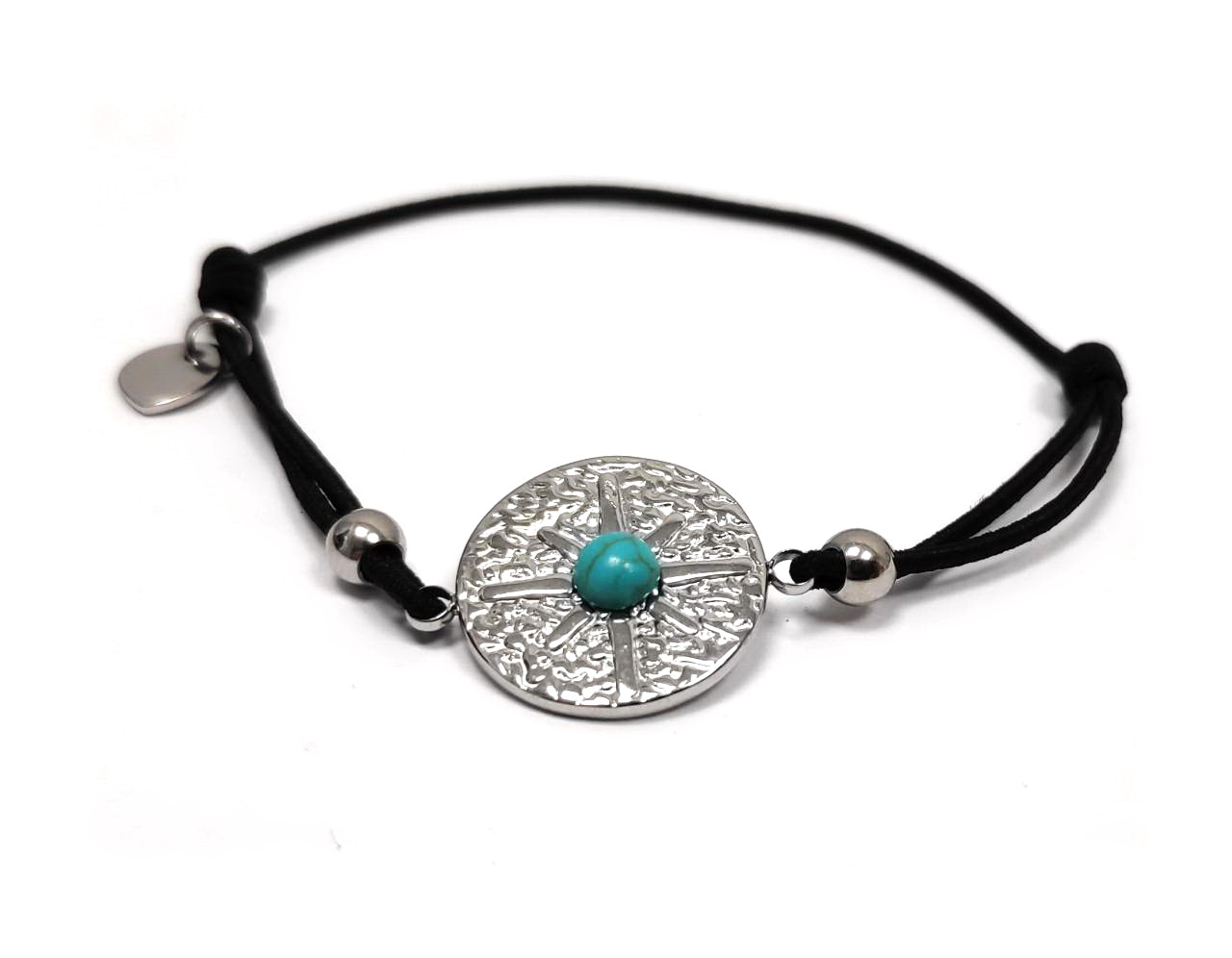 Βραχιόλι Πέτρα 316L, με λάστιχο και τυρκουάζ σε χρώμα Ασημί