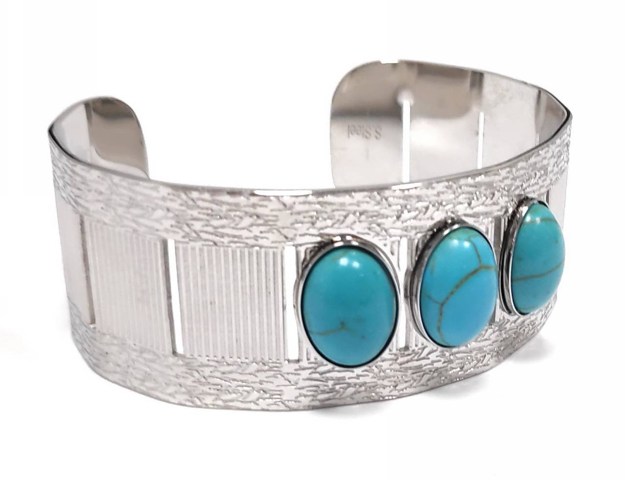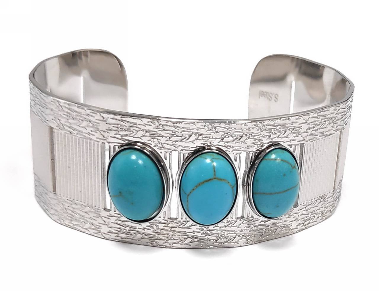 Βραχιόλι Πέτρα 316L, σταθερό με τυρκουάζ σε χρώμα Ασημί