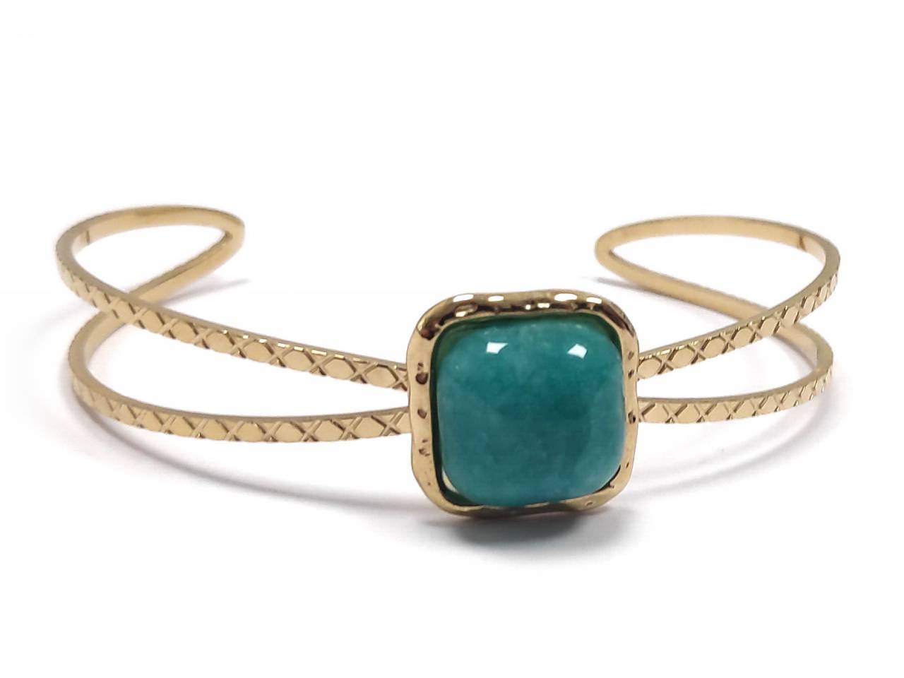Βραχιόλι Πέτρα 316L, σταθερό με τυρκουάζ σε χρώμα Χρυσαφί