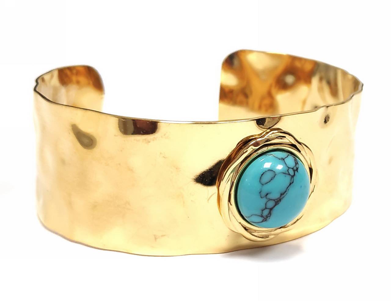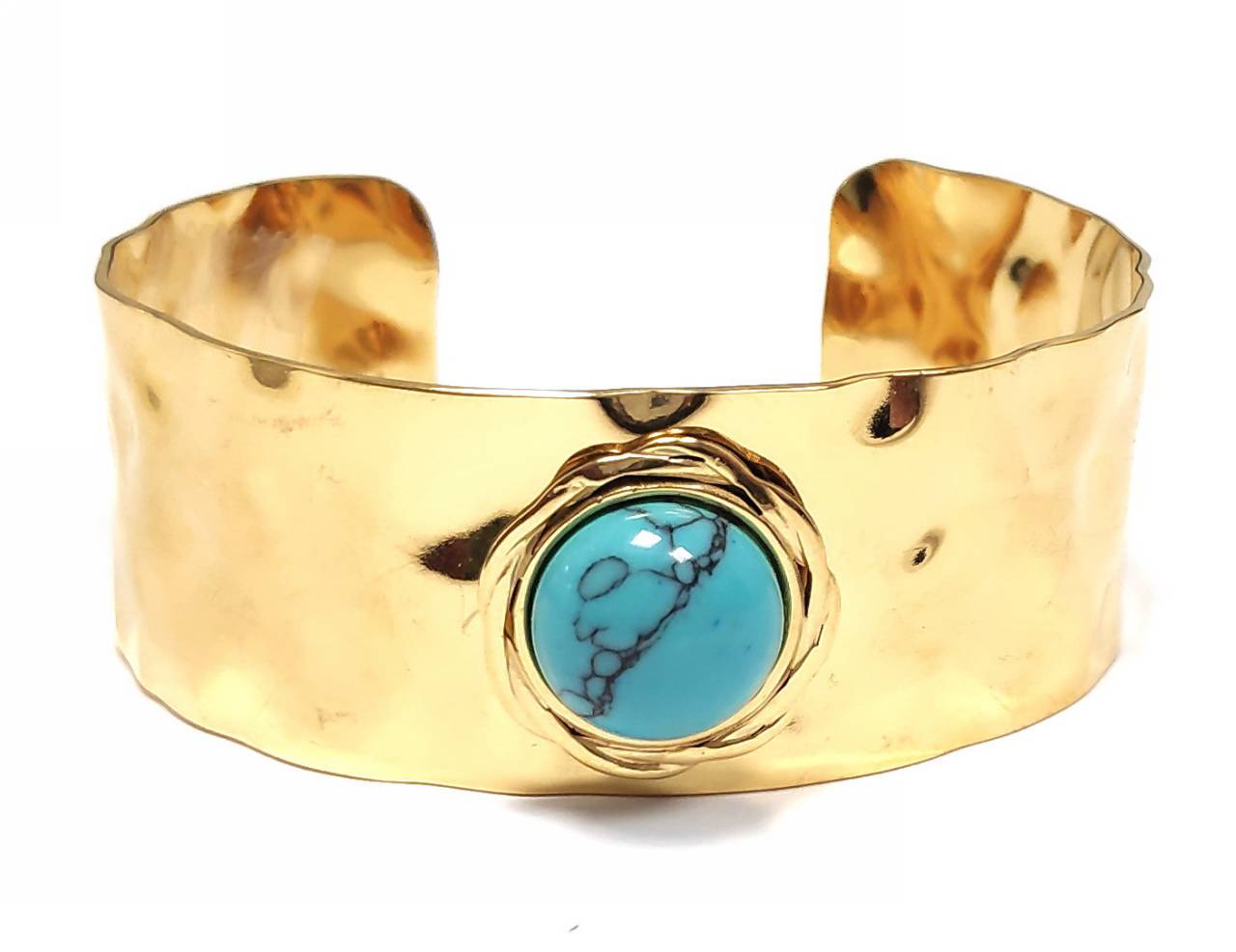 Βραχιόλι Πέτρα 316L, σταθερό με τυρκουάζ σε χρώμα Χρυσαφί