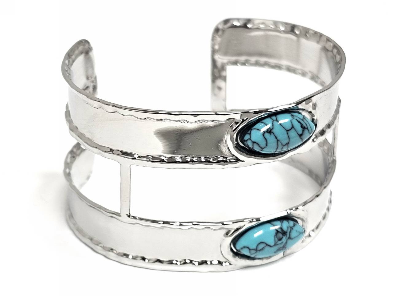 Βραχιόλι Πέτρα ατσάλι 316L, σταθερό με τυρκουάζ σε χρώμα Ασημί