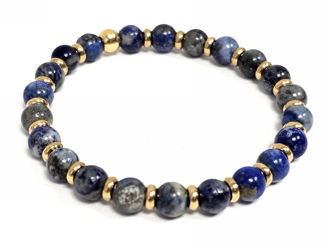 Βραχιόλι Πέτρα λάστιχο, 6# Lapis και ατσάλινα στοιχεία σε χρώμα Χρυσαφί