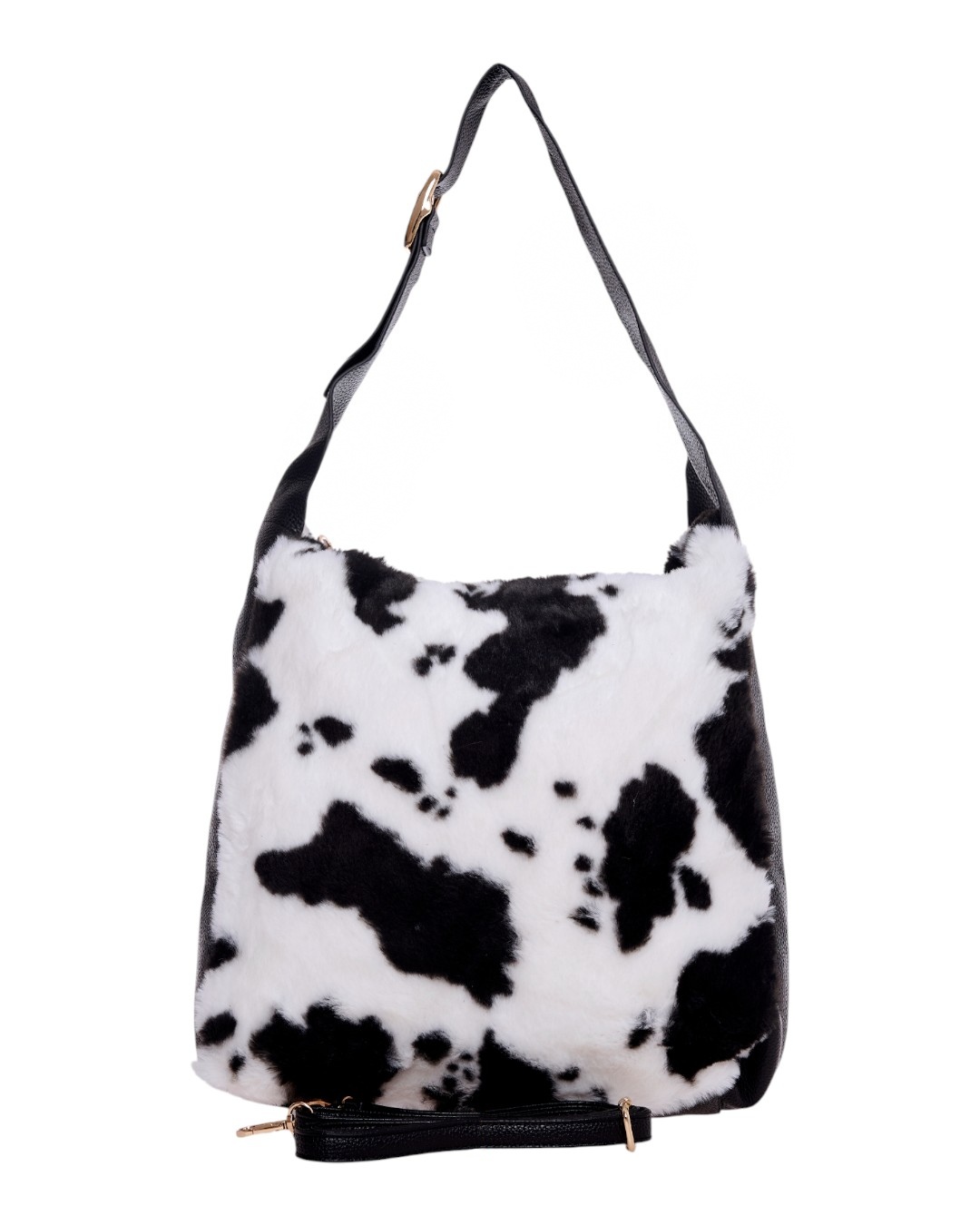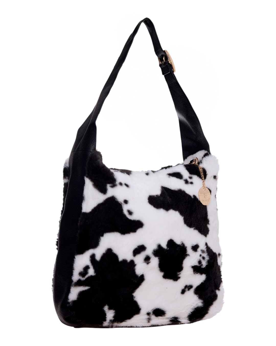 Γούνινη τσάντα ώμου XY-2515 – Ασπρο/Μαύρο