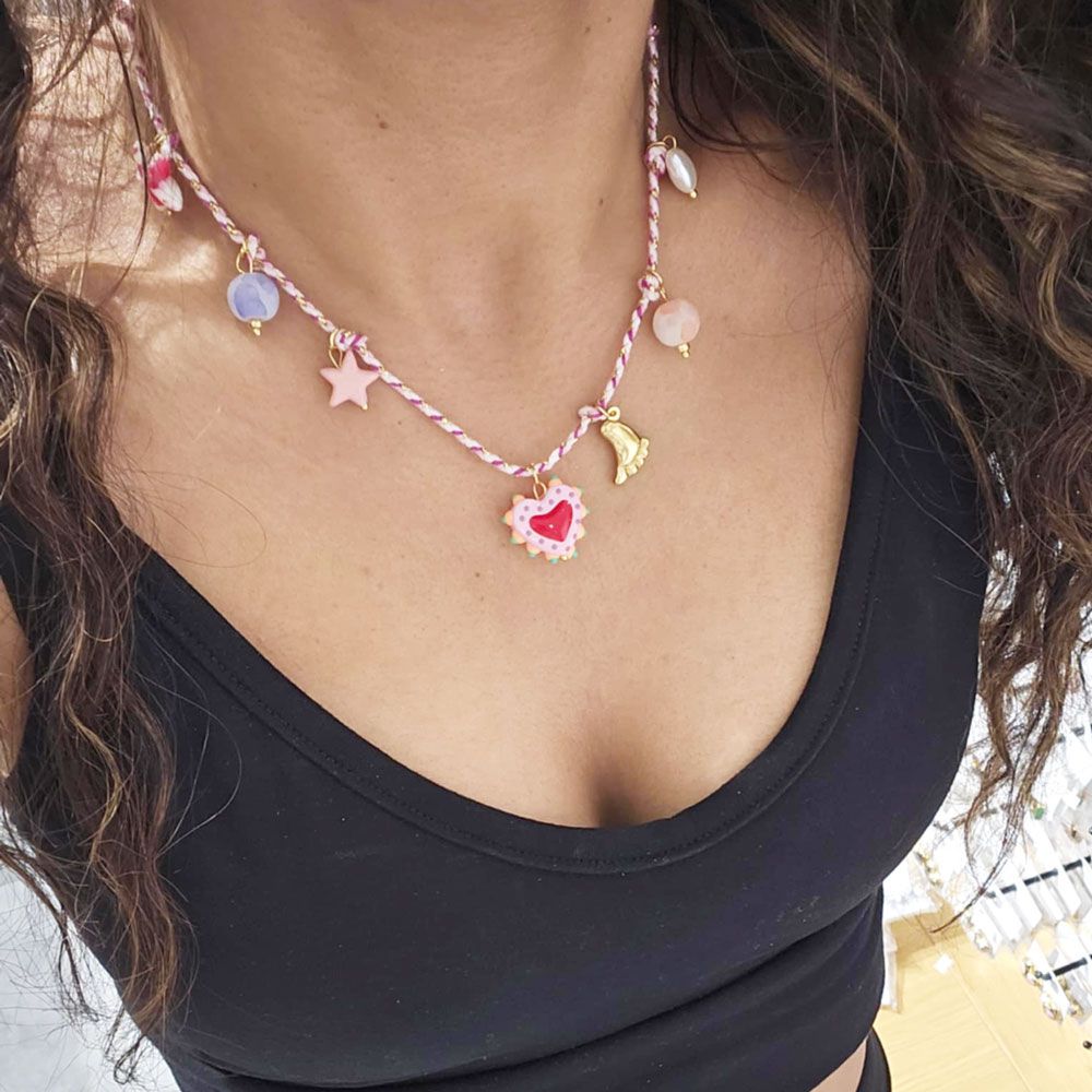 Ένα παιχνιδιάρικο και καλοκαιρινό κολιέ από ανοξείδωτο ατσάλι, ιδανικό για να φωτίσει κάθε σου εμφάνιση! Με Χρωματιστή Καρδιά στο κέντρο και κρεμαστα στοιχεια οπως αστερι,μπιλιες,πατούσα,αστεριας, αποπνέει αέρα ανεμελιάς και διακοπών. Ανθεκτικό και ελαφρύ, μπορεί να φορεθεί καθημερινά και να συνδυαστεί εύκολα με άλλα κοσμήματα. Μήκος Αλυσίδας: 42+7εκ.