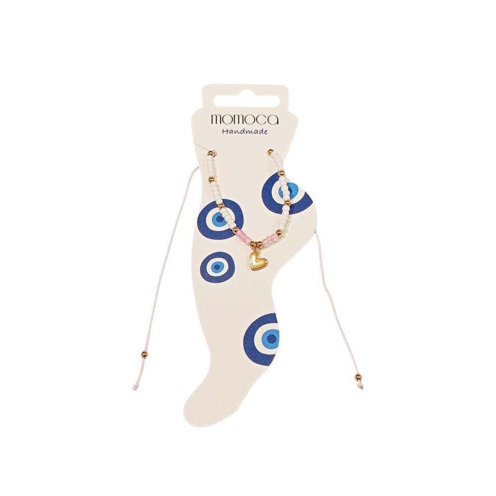 βραχιόλι ποδιού με ροζ χάντρες και χρυσή καρδιά 12 τεμ.