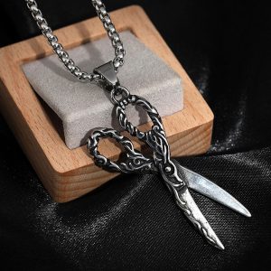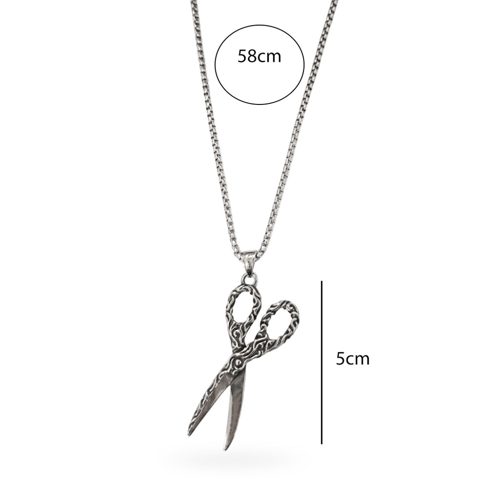 Unisex αλυσίδα από ανοξείδωτο ατσάλι με εντυπωσιακό μοτίφ ψαλιδιού, ιδανικό για επαγγελματίες κομμωτές ή για όσους αγαπούν τα ιδιαίτερα και εναλλακτικά κοσμήματα. Με μήκος αλυσίδας 58cm και κρεμαστό 5cm, προσθέτει δυναμικό και μοντέρνο χαρακτήρα σε κάθε εμφάνιση.