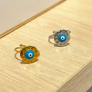 Ατσάλινο Ρυθμιζόμενο Δαχτυλίδι Στρόγγυλο Με Ματάκι – Χρυσό