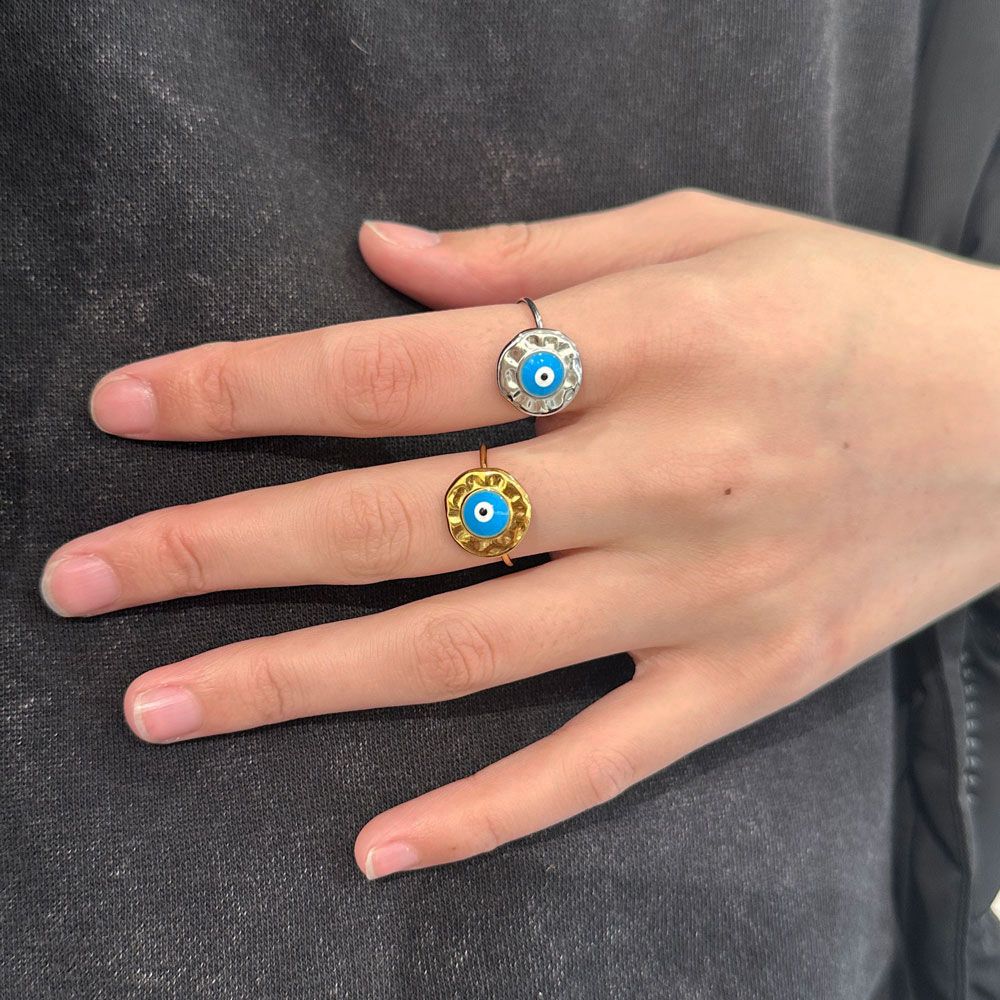 • Ατσάλινο Ρυθμιζόμενο Δαχτυλίδι Στρόγγυλο Με Ματάκι - ΧρυσόA02A