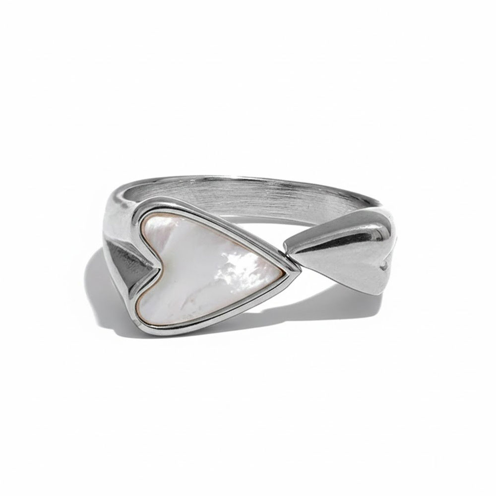 Ατσάλινο Δαχτυλίδι Καρδιά με Φίλντισι Ασημί Χρώμα