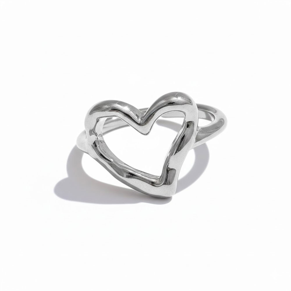 Ατσάλινο Ρυθμιζόμενο Δαχτυλίδι με Ακανόνιστη Καρδιά Ασημί Χρώμα