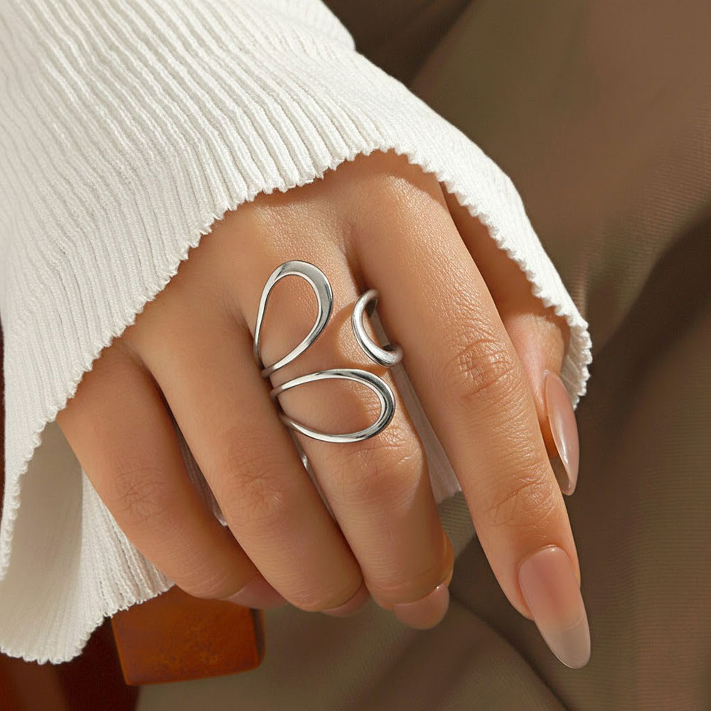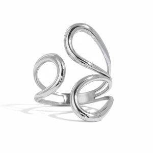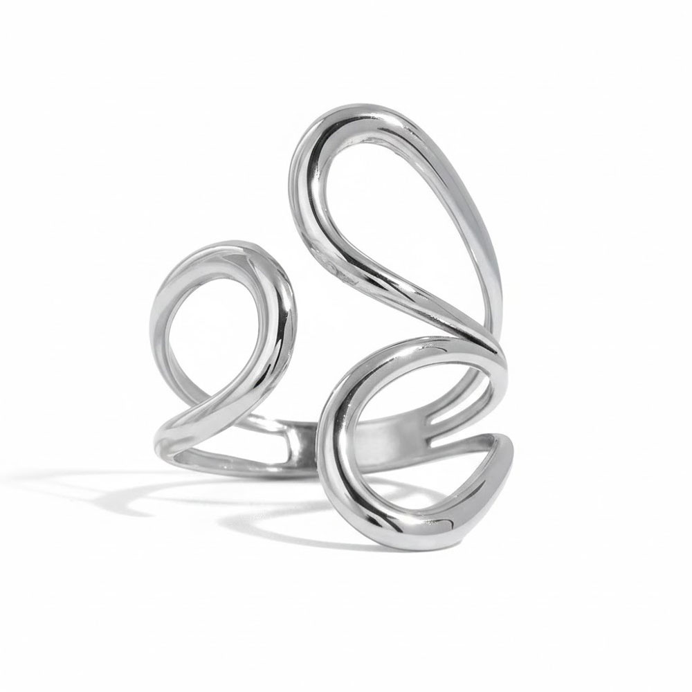 Μοντέρνο ατσάλινο δαχτυλίδι με κυματιστό, γλυπτικό σχεδιασμό που αγκαλιάζει το δάχτυλο με κομψότητα. Η λεία και καμπυλωτή του φόρμα προσφέρει minimal αλλά εντυπωσιακό αποτέλεσμα, ιδανικό για καθημερινό styling ή πιο ιδιαίτερες εμφανίσεις. Φοριέται άνετα μόνο του ή συνδυαστικά με άλλα κοσμήματα για ένα σύγχρονο layered look.