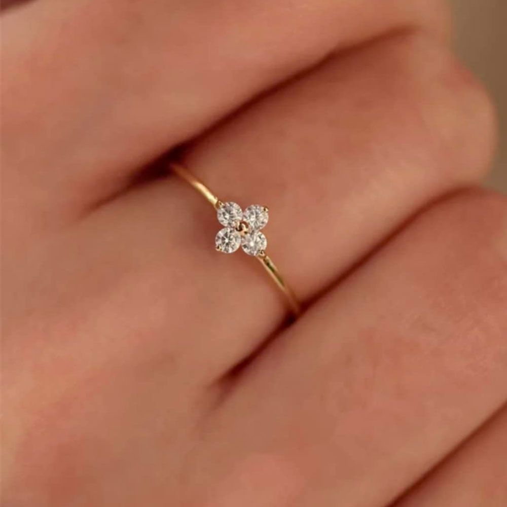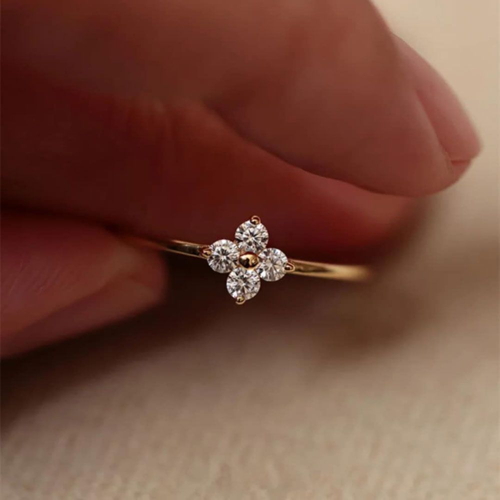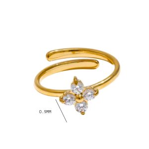 Ατσάλινο Ρυθμιζόμενο Δαχτυλίδι Σε Σχήμα Λουλούδι Με Πέτρες Ζιργκόν – Χρυσό