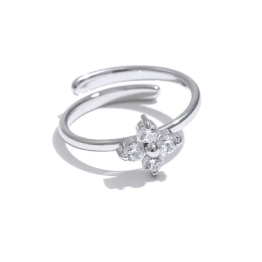 • Ατσάλινο Ρυθμιζόμενο Δαχτυλίδι Σε Σχήμα Λουλούδι Με Πέτρες Ζιργκόν - ΑσημίX0069B