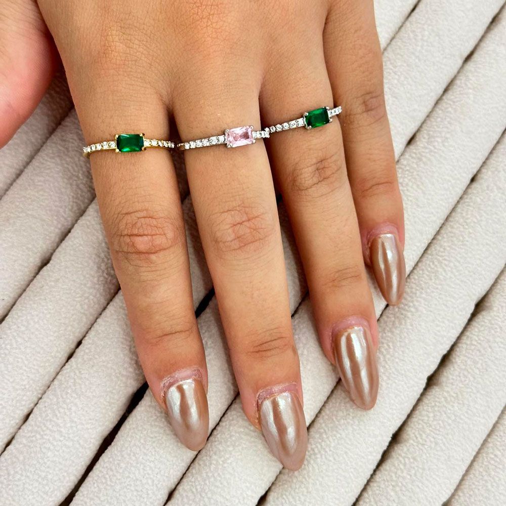 • Ατσάλινο Δαχτυλίδι Mε Χρωματιστή Πέτρα - Ασημί ΡοζJ76