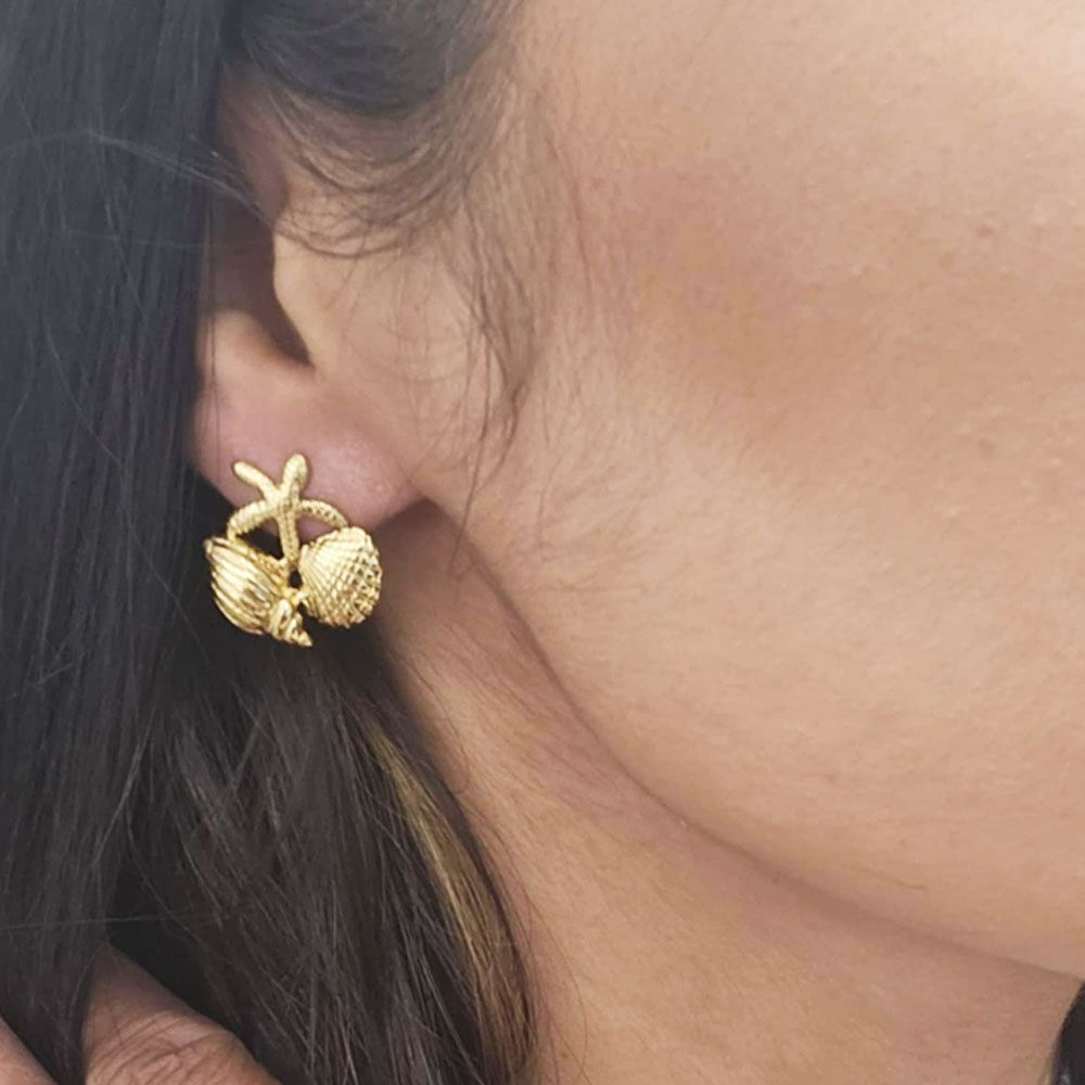 Ατσάλινα Σκουλαρίκια Καρφωτά Με Θαλασσινά Στοιχεία – Χρυσό