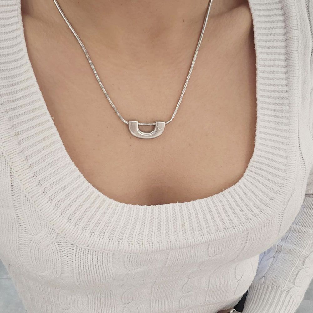 • Κολιέ Απο Ανοξείδωτο Ατσάλι Με Στρόγγυλη Αλυσίδα Σε Σχήμα U - ΑσημίA41021B