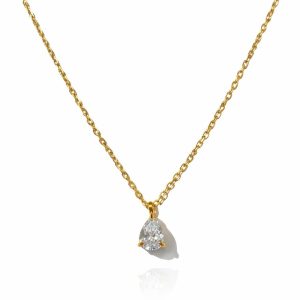 Ατσάλινο Κολιέ με Μονό Δάκρυ Χρυσό Χρώμα