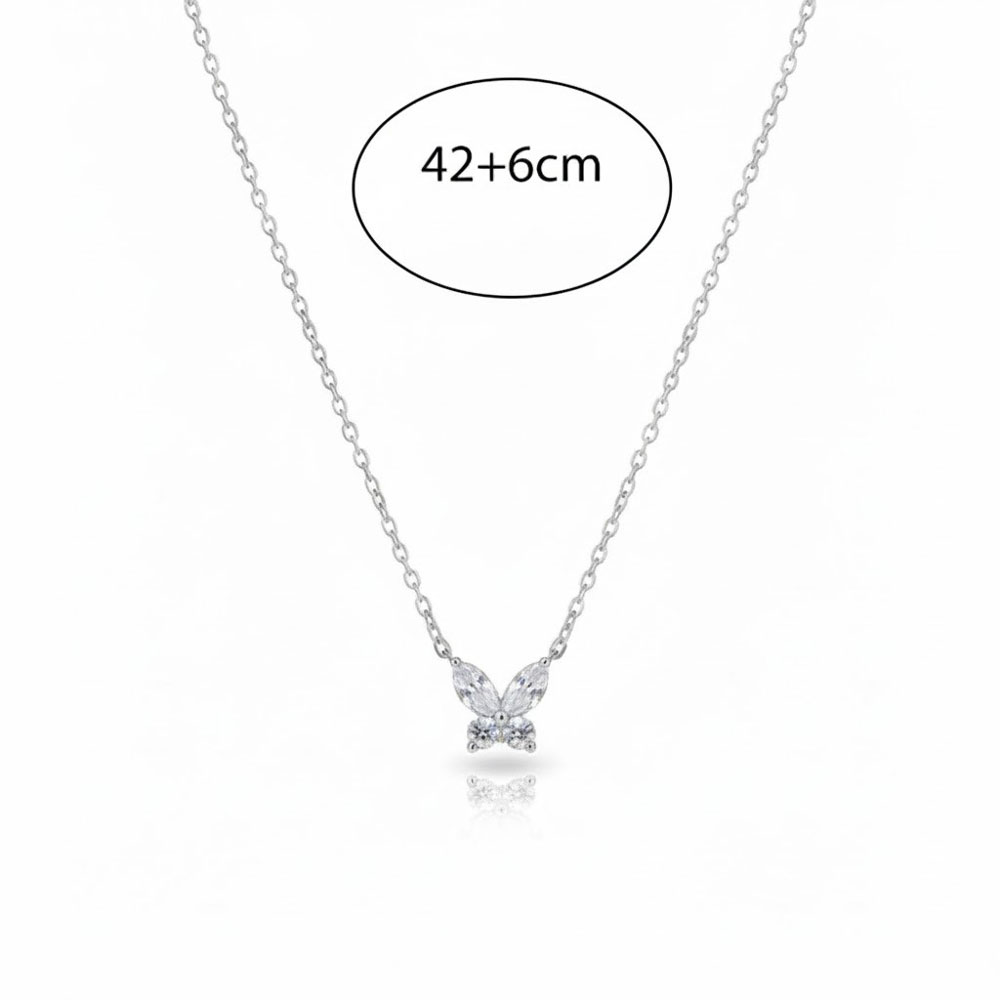 • Ατσάλινο Κολιέ με Πεταλούδα με Στρας Ασημί ΧρώμαA3226B