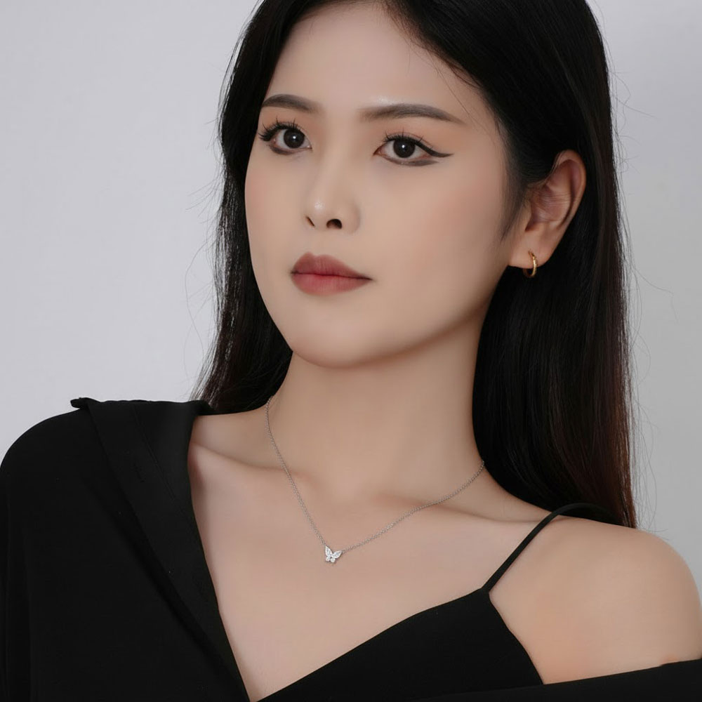 Κομψό ατσάλινο κολιέ με πεταλούδα διακοσμημένη με στρας, που προσθέτει διακριτική λάμψη και θηλυκό χαρακτήρα. Ιδανικό για καθημερινές αλλά και πιο ιδιαίτερες εμφανίσεις, φοριέται μόνο του ή σε layering για elegant αποτέλεσμα.