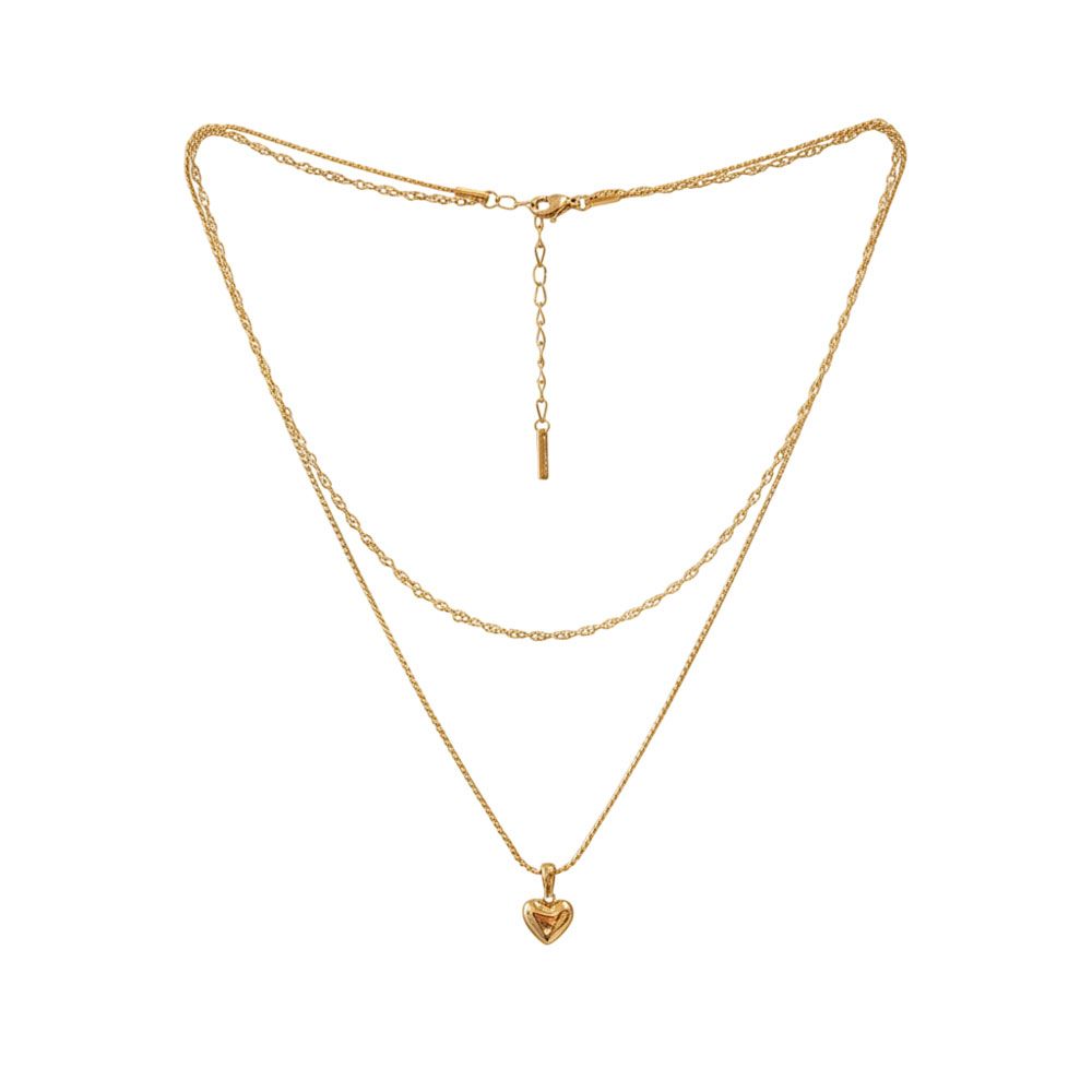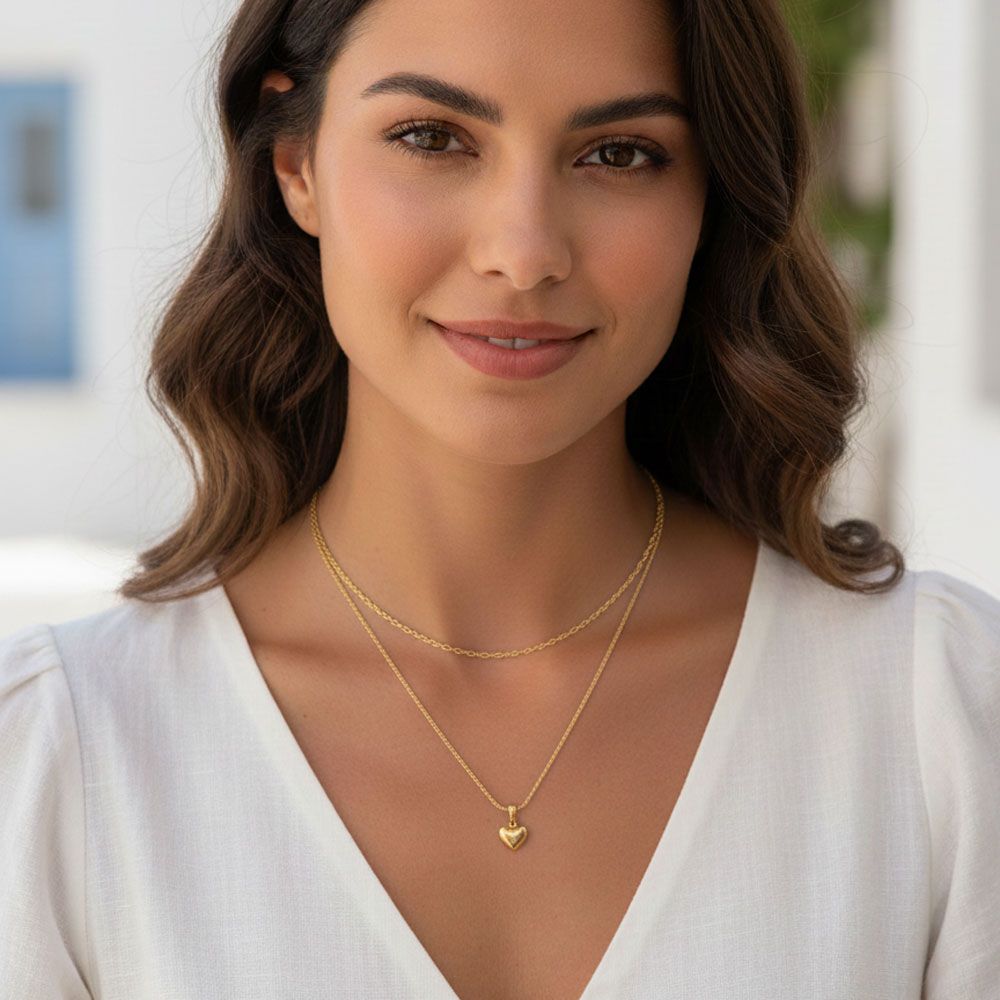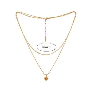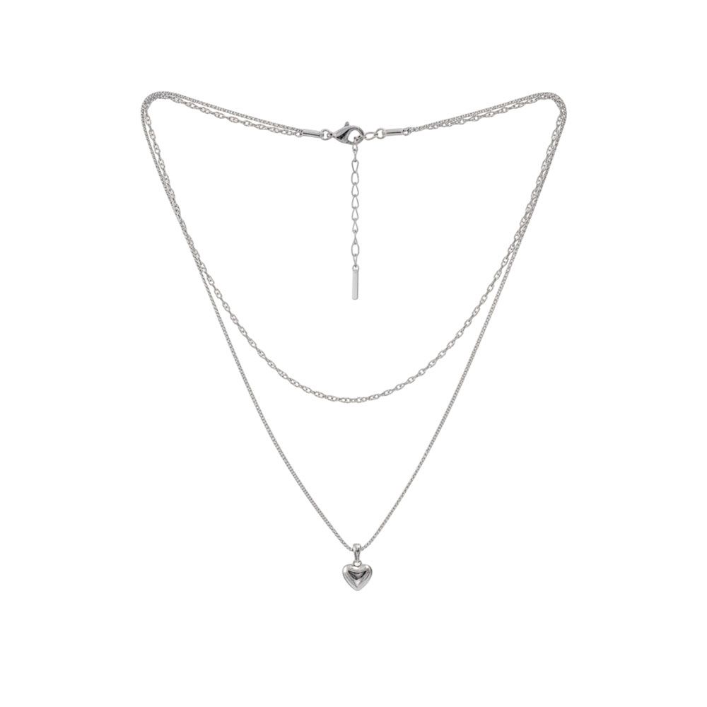 Ατσάλινο κολιέ με δύο λεπτές αλυσίδες σε χρυσό ή ασημί χρώμα και κρεμαστό μοτίφ σε σχήμα καρδιάς. Ένα ρομαντικό και διαχρονικό σχέδιο που χαρίζει θηλυκότητα και κομψότητα σε κάθε εμφάνιση. Μήκος αλυσίδας 40+6cm για άνετη εφαρμογή.