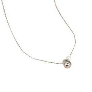 Εντυπωσιακό αλλά διακριτικό κολιέ με αλυσίδα από ανοξείδωτο ατσάλι και εκλεπτυσμένο συνδυασμό μαργαριταριού με μοντέρνο μεταλλικό στοιχείο. Ένα κομμάτι που χαρίζει φινέτσα και θηλυκότητα, ιδανικό για καθημερινό ή βραδινό στυλ.Διαθέσιμο σε χρυσό και ασημί.Μήκος: 40 + 6 cmΜέγεθος στοιχείου: 1 cm
