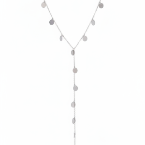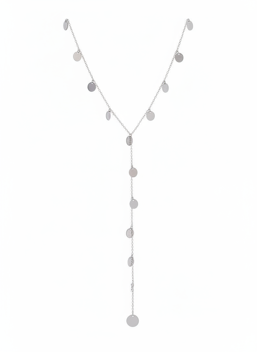 Ατσάλινο κολιέ  με λεπτή αλυσίδα και κρεμαστούς δίσκους που δημιουργούν κομψό και εντυπωσιακό σχέδιο. Ιδανικό για καθημερινές αλλά και πιο επίσημες εμφανίσεις. Μήκος αλυσίδας 45+6cm και μήκος κρεμαστού 15cm.