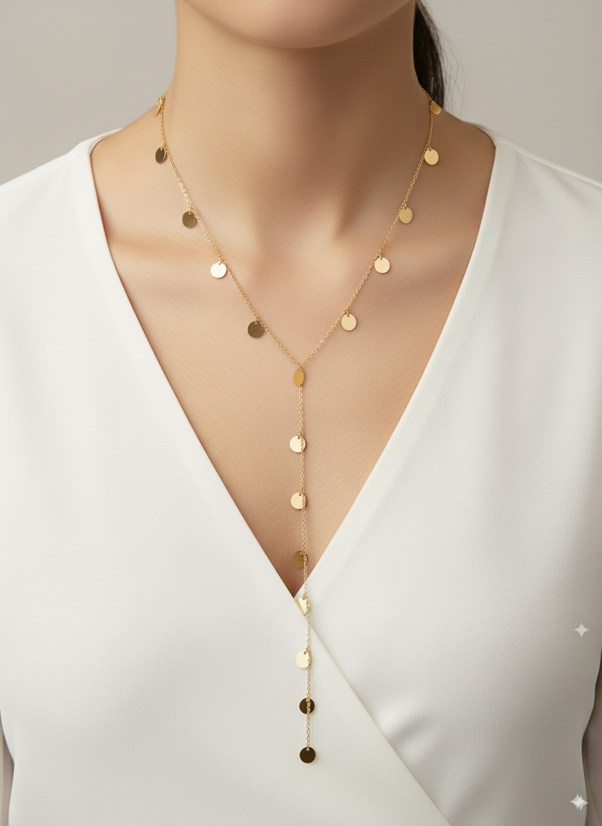 Ατσάλινο κολιέ με κρεμαστούς δίσκους – Χρυσό