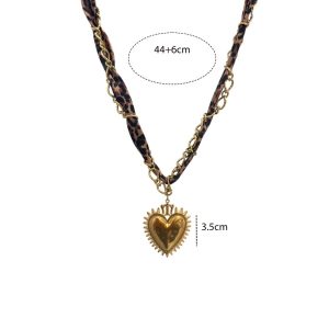 Ατσάλινο καουμπόικο κολιέ με leopard υφασμάτινο κορδόνι και χρυσή μεταλλική αλυσίδα. Διακοσμημένο με εντυπωσιακό μενταγιόν σε σχήμα καρδιάς, χαρίζει boho και western αισθητική που ξεχωρίζει.Μήκος: 44 + 6 cmΜέγεθος μενταγιόν: 3,5 cm