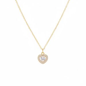 Κομψό κολιέ από ανοξείδωτο ατσάλι με μενταγιόν σε σχήμα καρδιάς, διακοσμημένο με λαμπερά ζιργκόν στο κέντρο και περιμετρικά.Διαχρονικό σχέδιο που προσθέτει μια διακριτική λάμψη σε κάθε εμφάνιση.Διατίθεται σε χρυσό και ασημί χρώμα, ιδανικό για δώρο αγάπης ή για να ολοκληρώσει το καθημερινό σας στυλ.