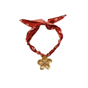 Μοντέρνο κολιέ με μαντήλι σε διάφορα σχέδια (λεοπάρ, floral, paisley) και εντυπωσιακό μεταλλικό λουλούδι σε χρυσό χρώμα.Ένα ιδιαίτερο αξεσουάρ που συνδυάζει ρομαντισμό και boho αισθητική, προσθέτοντας μοναδικό χαρακτήρα σε κάθε outfit — από casual μέχρι πιο βραδινό.Το ύφασμα είναι απαλό και ρυθμιζόμενο, επιτρέποντάς σας να το δέσετε με διαφορετικούς τρόπους γύρω από τον λαιμό.
