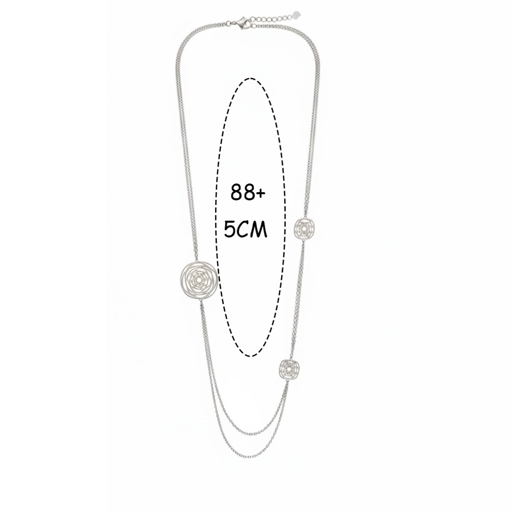 • Ατσάλινο Μακρύ Κολιέ με Κυκλικά Διακοσμητικά Στοιχεία Ασημί ΧρώμαA3267B