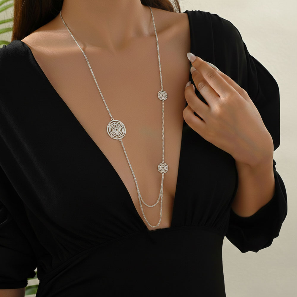 Ατσάλινο Μακρύ Κολιέ με Κυκλικά Διακοσμητικά Στοιχεία Ασημί Χρώμα